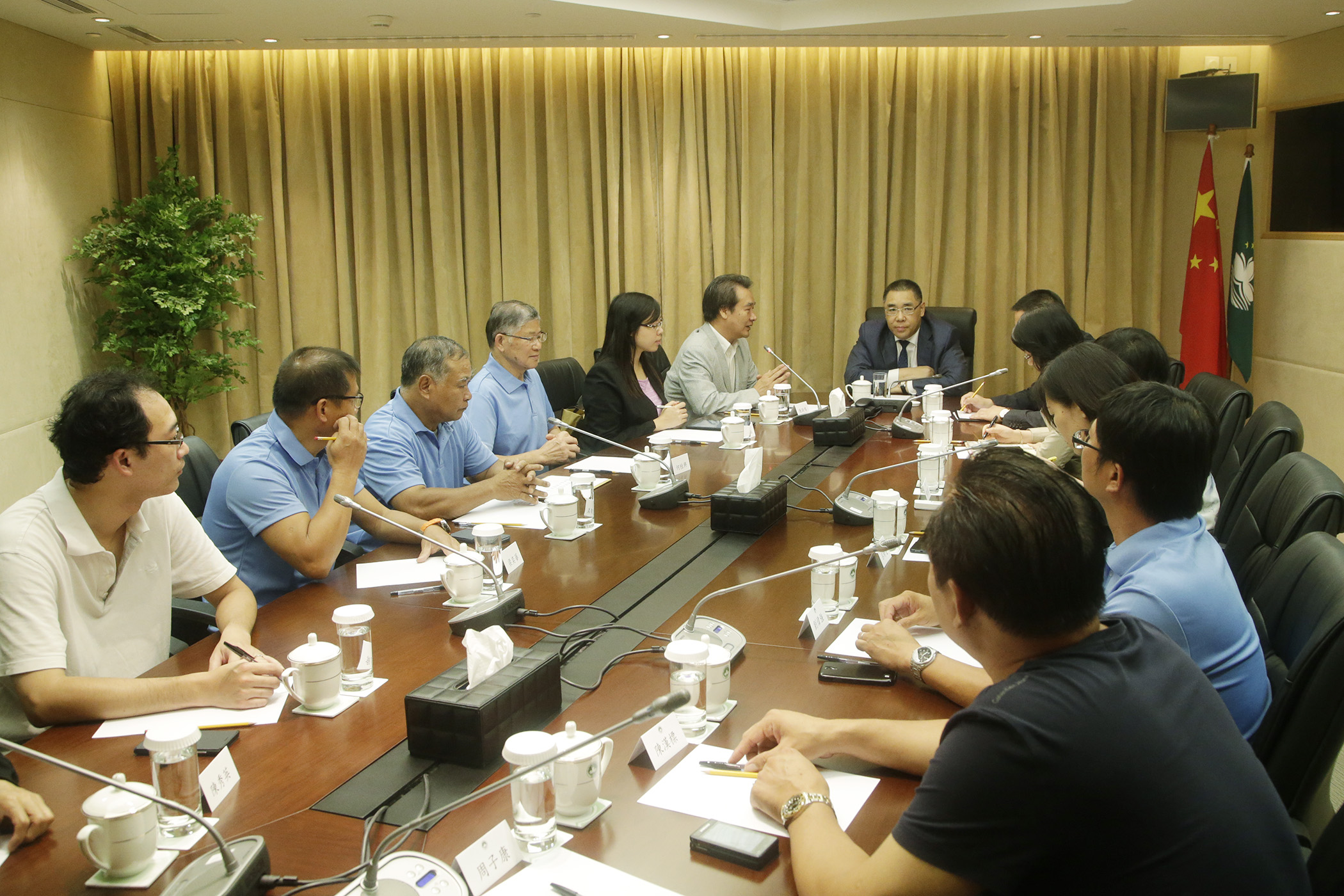 參加會面的包括行政長官辦公室主任柯嵐、澳門交通運輸業總工會會長何桂興、副理事長劉偉強及梁奕華等。