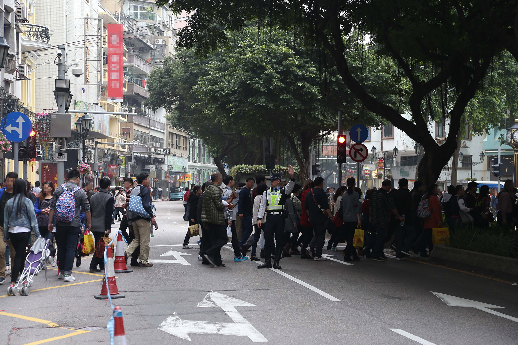 另外,新春期間市面人流暢旺,大量旅客前往新馬路及大三巴一帶觀光消費,由年初三至初六,該四天午後至傍晚人流特別密集,故警方先後四次在新馬路實行了第一級人潮管制措施;而大三巴街在年初三至年初五先後啟動三次人潮管制措施,期間市民和旅客積極配合警方現場的指示,有序行進。而措施以外時段則透過安排警員在道路接壤點引導,有效舒緩交通及人流,整體秩序良好。
