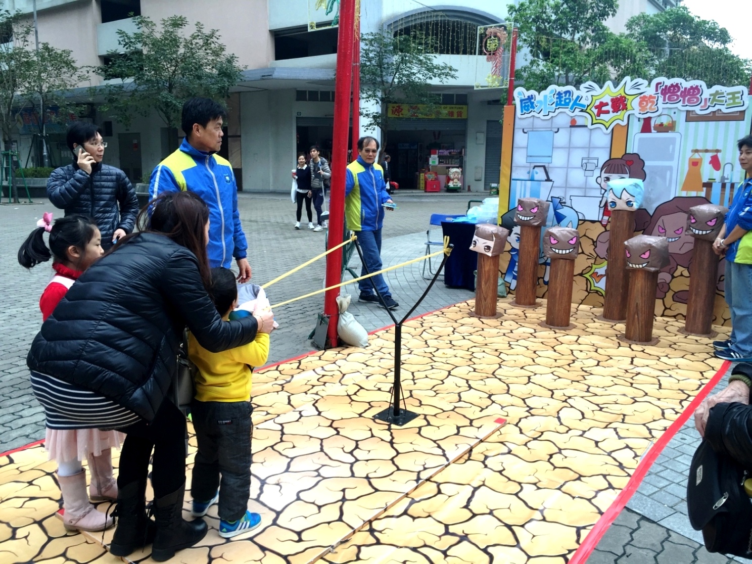 今日下午二時半至五時,小組假筷子基綠楊休憩區舉辦社區推廣活動,今年主題為“惜點滴,齊出力”,現場除了展出節水器具以及樓宇自來水系統模型,還設有多個以節約用水、認識鹹潮和維護管理樓宇自來水系統為主題的攤位遊戲和工作坊,透過輕鬆、互動、有趣的形式,介紹節約用水和維護樓宇自來水系統的方法。節水由點滴累積,教導從幼小開始,今年小組推出了校園節水宣傳劇《威水超人》,所以 “社區節水巡禮”活動以劇中角色和情節增設了《威水超人》主題遊戲,吸引了眾多家長和小朋友踴躍參與。