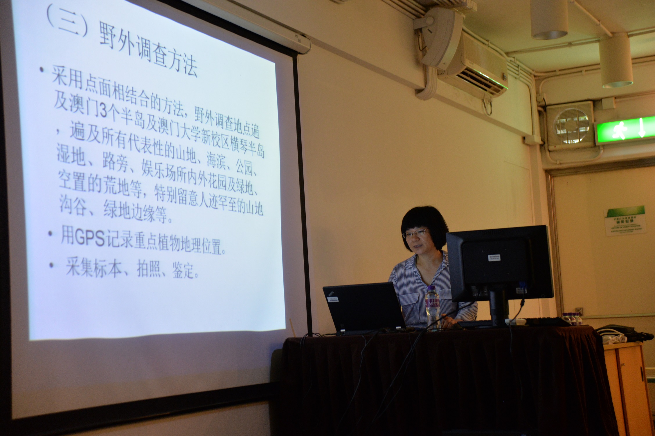 為配合此有意義的國際性紀念日,民署特邀中國科學院華南植物園易綺斐副教授來澳,以“澳門野生植物物種普查"為主題,於五月十二日為園林綠化部二十五名技術人員舉行講座,總結二○一四年七月至二○一五年六月的澳門野生植物物種多樣性普查成果,內容包括:澳門植被變化的總體概況、澳門原有野生植物的新分佈點、澳門野生植物的新記錄種、澳門現有之國家重點保護植物、澳門的珍稀野生植物物種介紹及分佈、珍稀植物及特色植被的保護建議等。