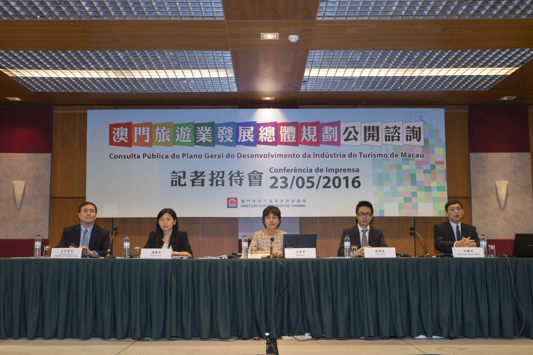 旅遊局今(23日)於旅遊活動中心舉行記者招待會,介紹澳門旅遊業發展總體規劃公開諮詢工作的安排及宣傳計劃。旅遊局局長文綺華、副局長謝慶茜及程衛東等出席。