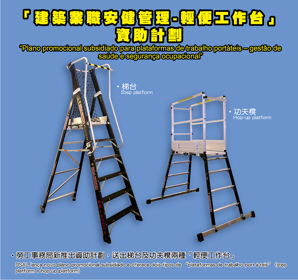 勞工事務局為鼓勵本澳建築企業逐步實行職安健管理,今年新推出「建築業職安健管理-輕便工作台」資助計劃,對象為僱員人數在300人或以下的企業。計劃內容分兩部份,包括為申請企業提供免費的「建築業職安健管理專題講座」及「輕便工作台」安全用具。