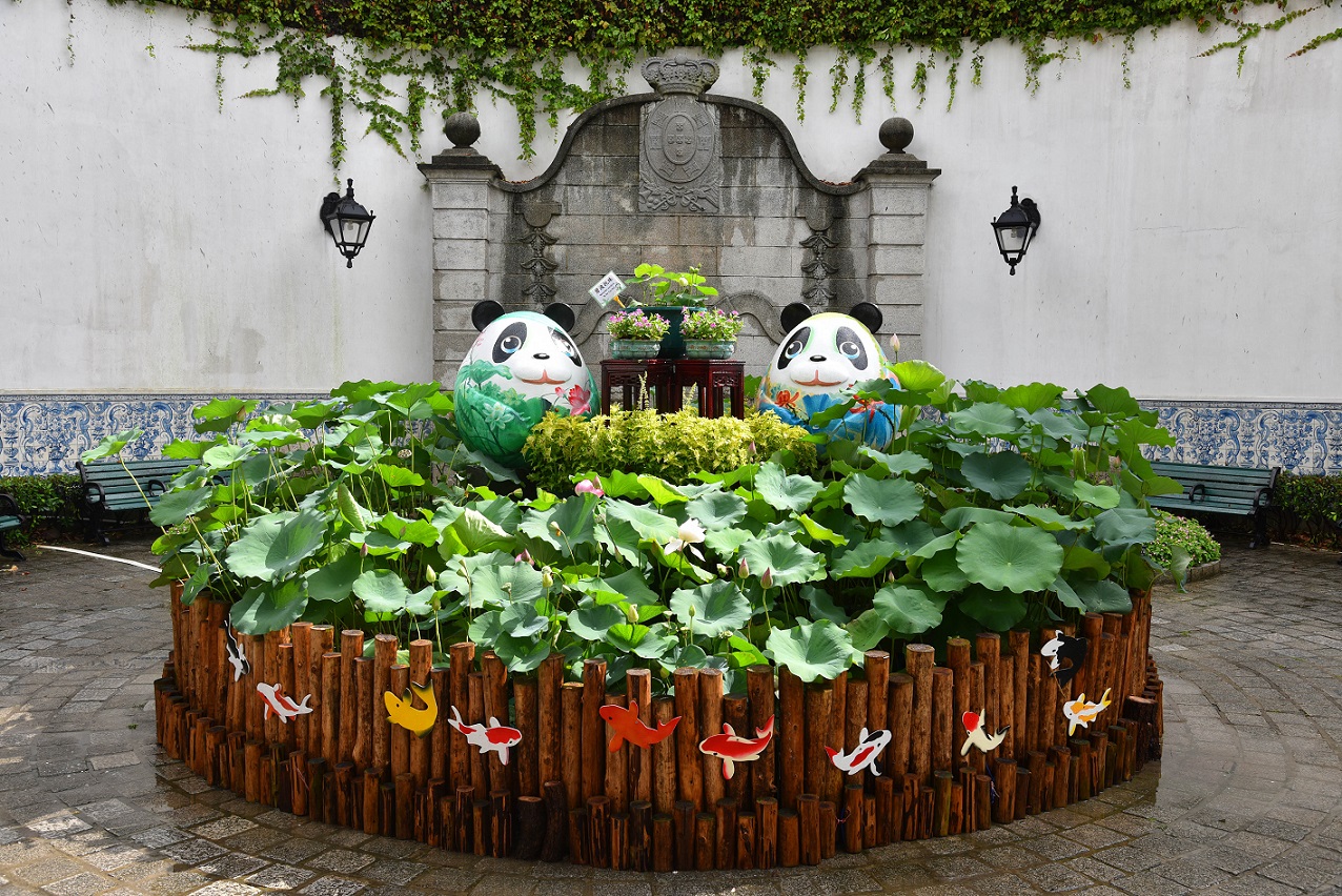 民政總署為了讓廣大市民有機會欣賞此難能可貴的奇緣,特別在民政總署大樓花園擺放一對熊貓寶寶公仔,並蒂蓮盆荷則陪伴在旁。預計並蒂蓮花盛開期在本周六、日(七月二至三日),因此想欣賞並蒂蓮花開的朋友們萬勿錯過。