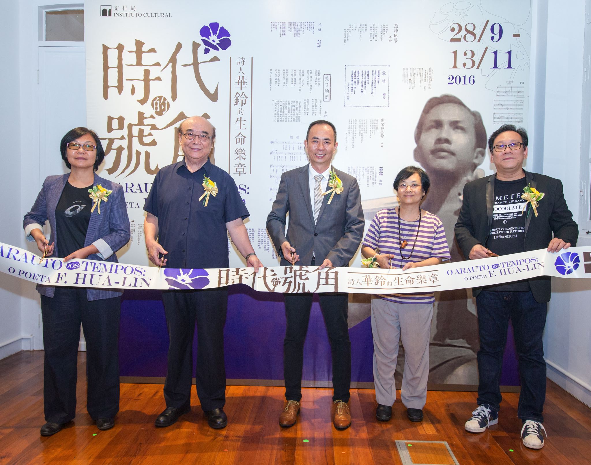 由文化局主辦的“時代的號角─―詩人華鈴的生命樂章”,於九月二十七日下午六時半在饒宗頤學藝館舉辦開幕儀式,並由文化局局長吳衛鳴、澳門筆會會長李觀鼎、澳門文獻信息學會會長鄧駿捷、澳門日報副總編輯廖子馨及華鈴先生家屬代表馮平北主禮。