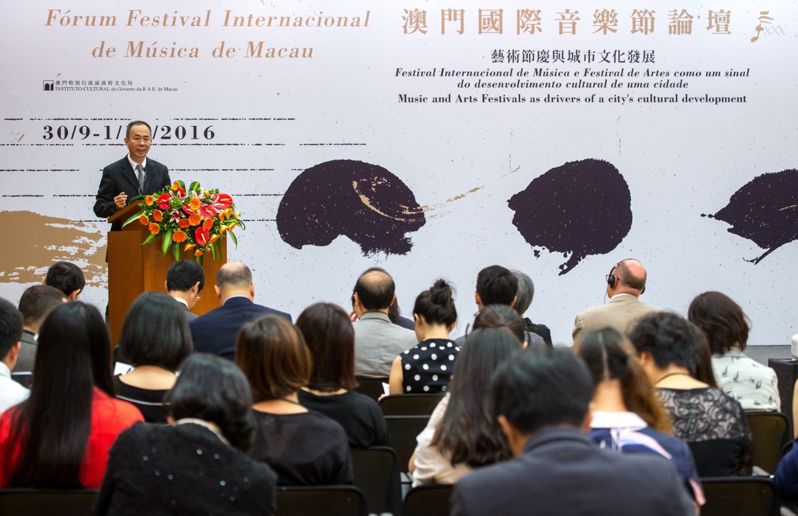 為共同探討國際藝術節慶活動如何推動城市的持續發展,文化局藉澳門國際音樂節三十周年的契機,於九月三十日至十月一日在文化中心會議室,以藝術節慶與城市文化發展”為題,舉辦“澳門國際音樂節論壇”,邀請海外及鄰近地區多位重量級文化推手進行演講及討論,分享不同地區的音樂節和藝術節與城市文化發展的相互影響。