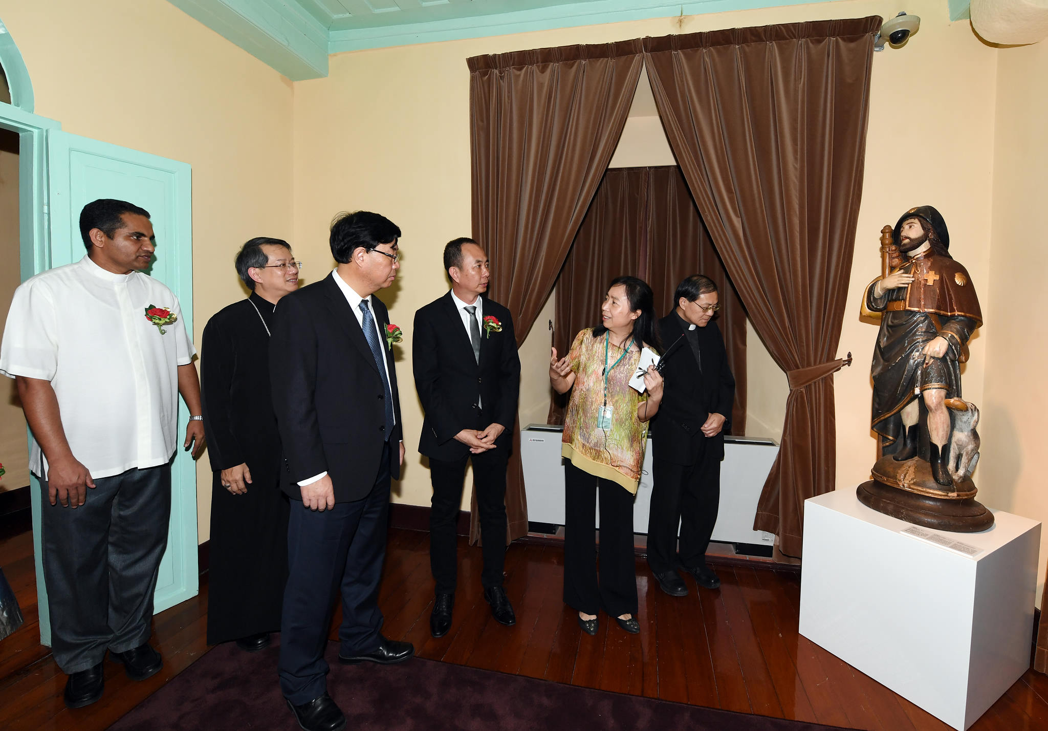 為了讓市民瞭解聖若瑟修院及澳門天主教發展的歷史,讓公眾有機會欣賞聖若瑟修院內珍貴的藏品,文化局與聖若瑟修院及天主教澳門教區特於聖若瑟修院內設立“聖若瑟修院藏珍館”,並於今日(十月七日)下午六時舉行開幕式,文化局局長吳衛鳴、外交部駐澳門特別行政區特派員公署副特派員蔡思平、澳門天主教區主教李斌生、聖若瑟修院神父周安智及文化局文博廳廳長李麗嬌等主持剪綵儀式。