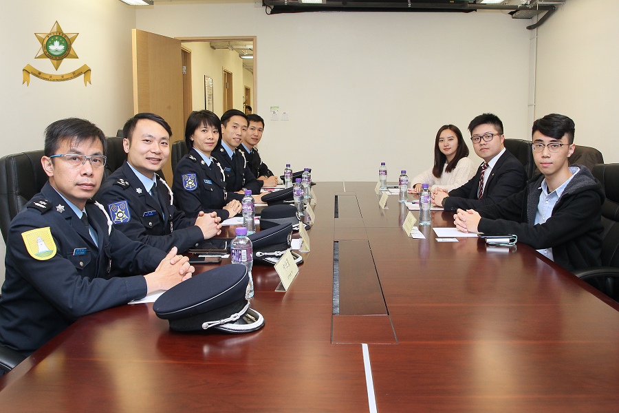 當日下午六時半,在治安警察局行動廳伍素萍廳長帶領下一行五人,到訪澳門中華學生聯合總會於宋玉生廣場教科文中心之辦事處,獲澳門學聯理事長李兆祖,副秘書長林翠倩及副理事長區孝丞等代表親切接待。