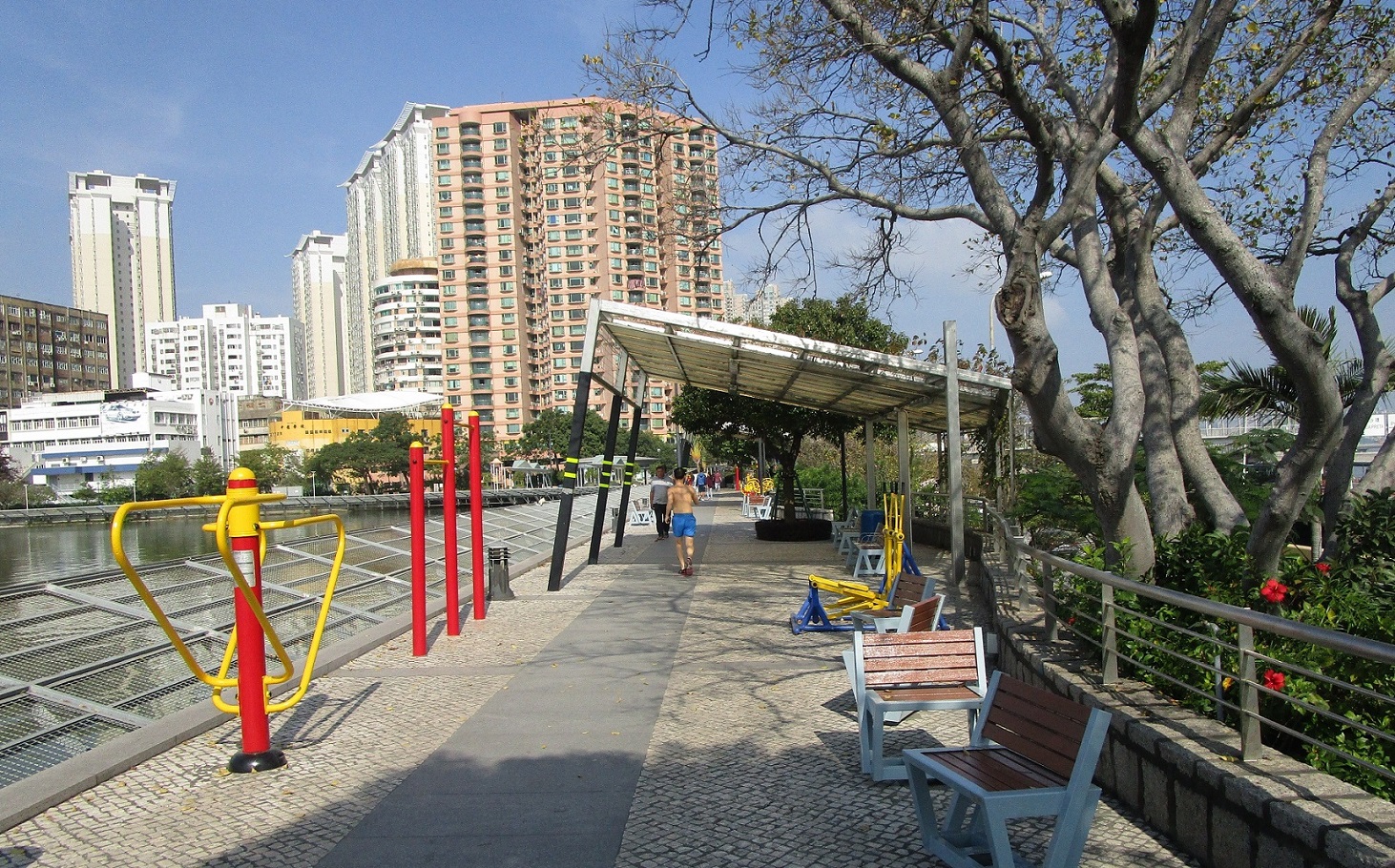 水塘休憩區已成為市民大眾進行運動及休閒活動的熱門地點,隨著使用率增加,休憩區的部分設施難免出現耗損或損壞的情況。民署早前對休憩區內的各項設施進行一系列維修及翻新,包括翻新兒童遊樂區設施組合、金屬鐵柱、涼亭等,打磨及清潔原有的油漆、按照原有或指定顏色塗抹油漆;並翻新休憩區內木椅油漆,以及各類型之健身器材,清除鏽蝕及原有的油漆、塗上防鏽漆。另外,健身器材的使用說明牌亦一併翻新。