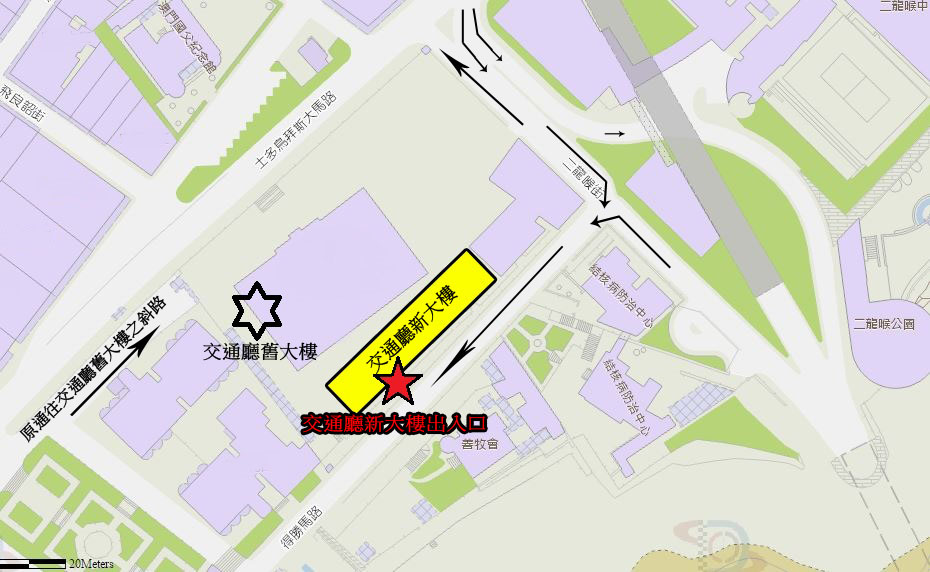 設於得勝馬路交通廳的新辦公樓將於3月12日下午1時許試行運作,開始向公眾提供24小時報案及其他服務,屆時,靠近士多鳥拜斯大馬路的原接待處將停止使用。市民若須前往交通廳報案、繳納交通罰款及處理各項交通事務等,可從設於得勝馬路的新門口進入。新辦公樓設有服務櫃檯及等候區,整個接待區域面積比原來的大接近一倍,可以為公眾提供更舒適的接待環境及更優質的服務。
