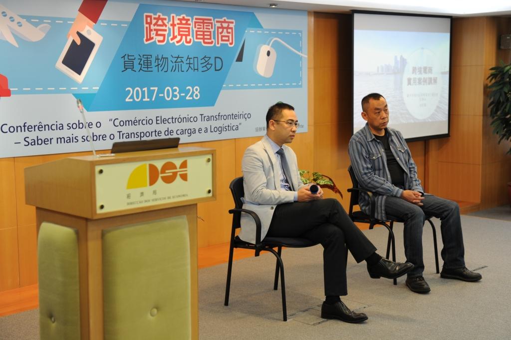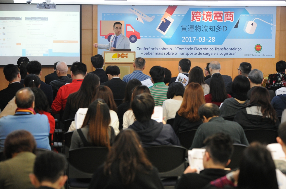 為協助本澳企業把握機遇,利用跨境電商開拓龐大的內地市場,由經濟局主辦、中葡電子商務商會協辦的“跨境電商─貨運物流知多D”講座已於2017年3月28日順利舉行。講座邀請到從事跨境電商及貨運物流的資深人士─中葡電子商務商會馬俊常務副會長、廣州市南沙區跨境電商行業協會李凱軍監事長擔任演講嘉賓,介紹跨境電商現狀以及跨境電商物流的解決方案。