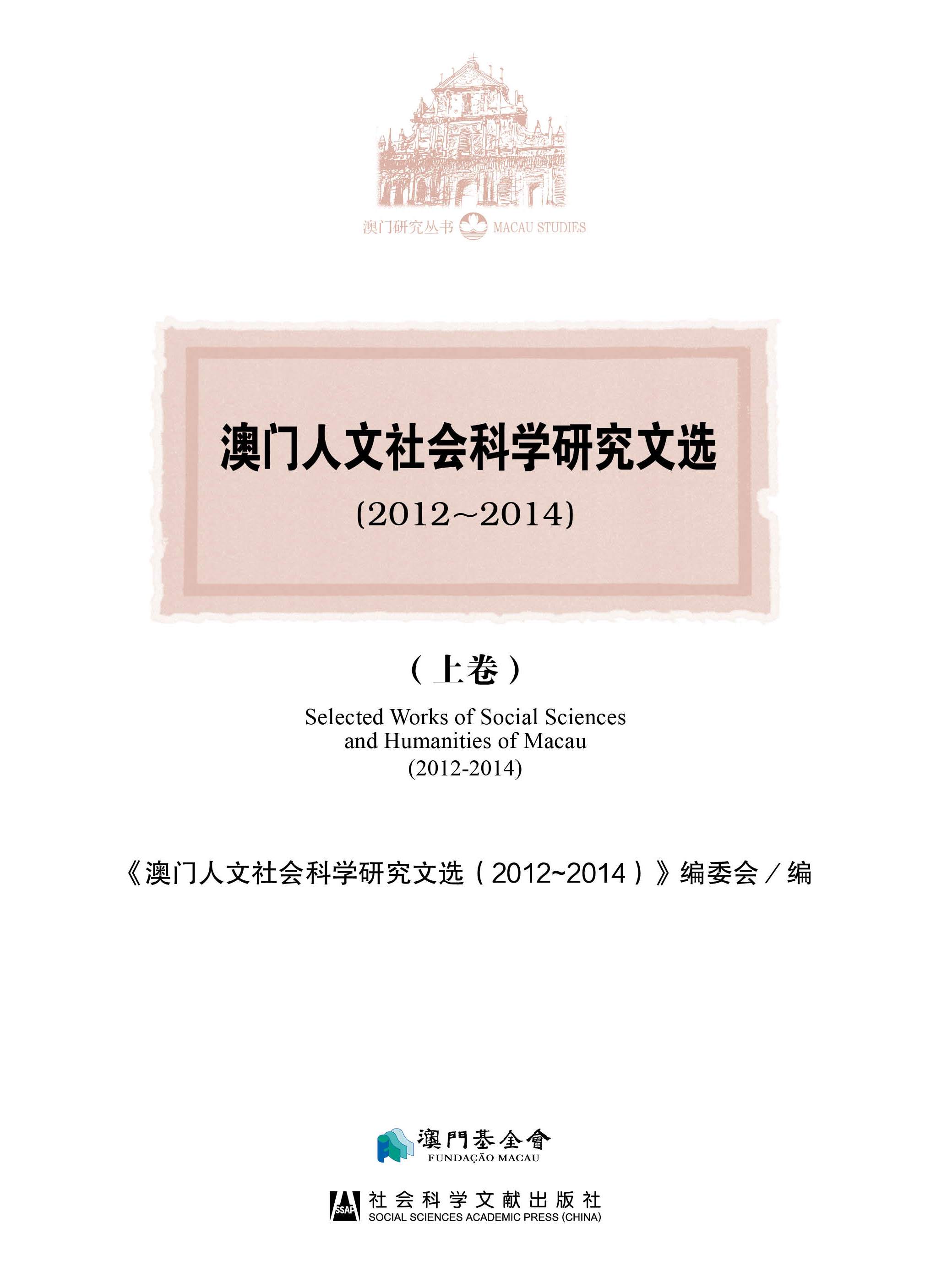 “澳門人文社會科學研究文選”為澳門基金會策劃的出版項目,旨在對澳門的學術研究成果進行全面的梳理和總結。《澳門人文社會科學研究文選(2012~2014)》為“文選"系列的第三編,分上、中、下三卷,共設政治、行政、基本法、法律、經濟、社會、文化藝術、歷史、教育、文學、語言翻譯和綜合12編,邀得余振、林媛、婁勝華、駱偉建、王禹、趙國強、楊允中、李德、陳繼春、吳志良、何志輝、楊秀玲、林發欽、李觀鼎、程祥徽及陳震宇共16位專家學者組織編委會進行選編,全書精選文章80篇,有助全面解讀澳門近年來人文社會科學研究的動態。
