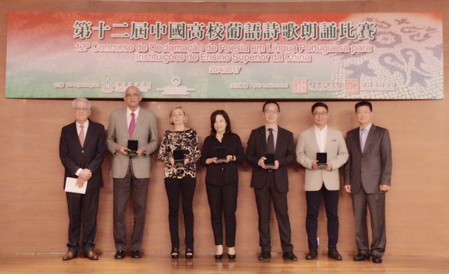 第十二屆中國高校葡語詩歌朗誦比賽昨日於澳門理工學院舉行。來自十二所澳門及內地大專院校共三十一名葡語學生分初級、中級和高級三組進行角逐,最終由澳門理工學院余佩佩、北京交通大學鄒鈺萍、澳門科技大學彭盈盈,分別奪得初級組、中級組、高級組第一名,其餘各組獎項還包括:初級組第二名北京交通大學高怡欣,第三名福建師範大學劉錦坪;中級組第二名澳門理工學院李靖怡,第三名北京語言大學湯燕平;高級組第二名澳門大學陳韻、第三名北京語言大學楊傲然;澳門科技大學彭盈盈獲得“東方基金會特別獎”。
