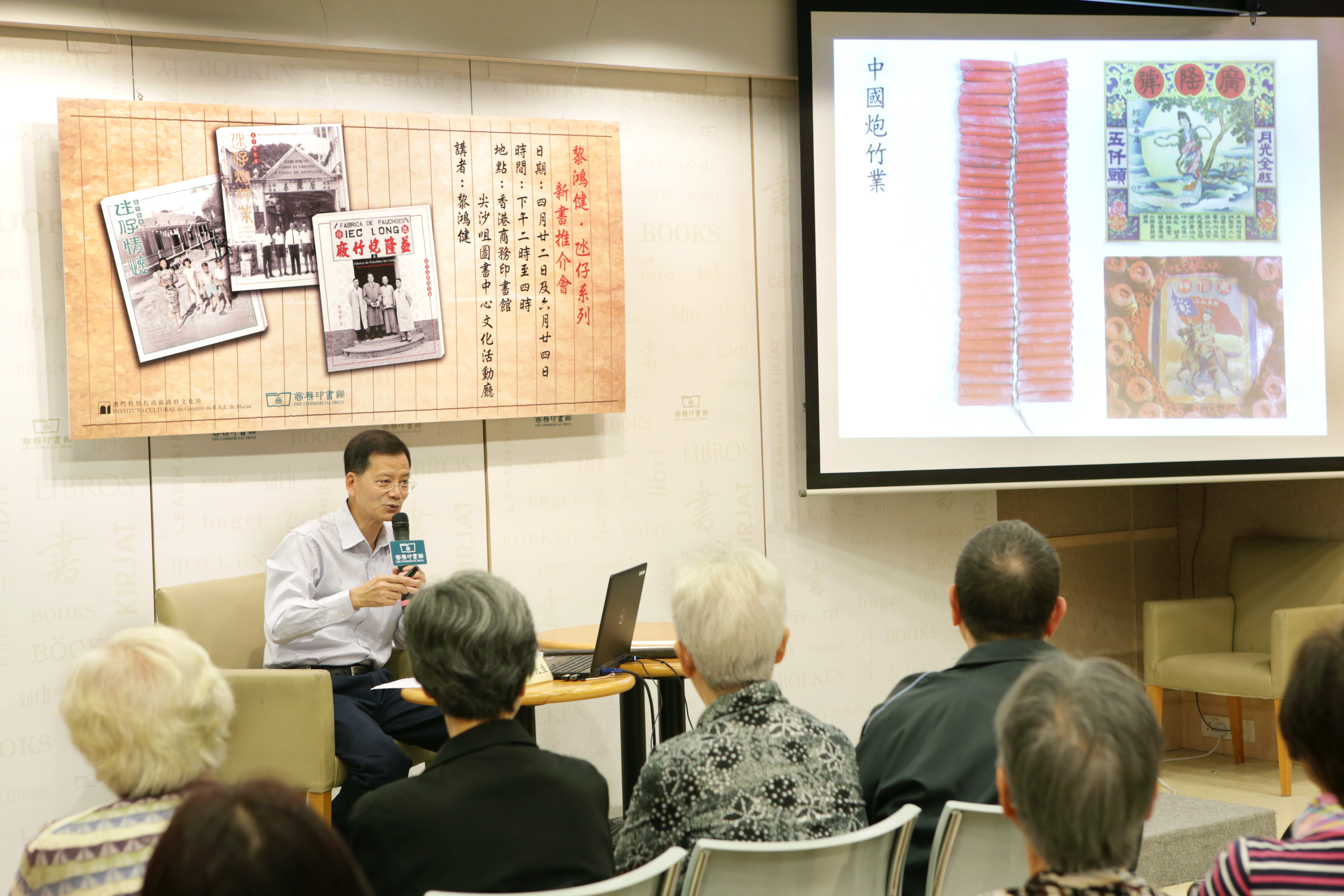 由文化局舉辦的“黎鴻健‧氹仔”系列新書推介會日前(四月二十二日)於香港尖沙咀彌敦道商務印書館圖書中心活動廳舉行,作者黎鴻健向香港讀者介紹昔日氹仔炮竹業以及六間炮竹廠興衰迭蕩的過程,以及整個炮竹製作的程序和工藝。