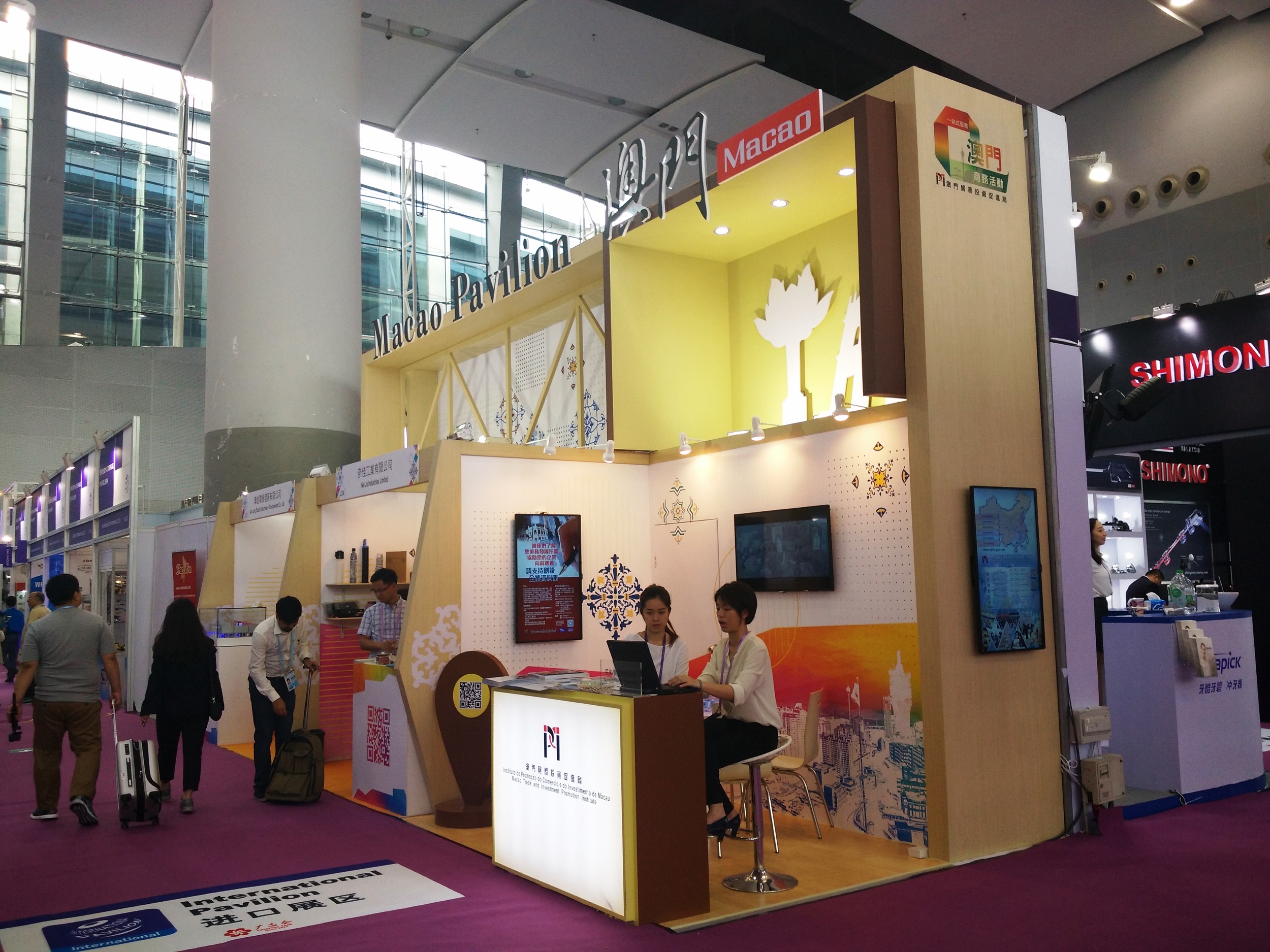 是次貿促局於會場內設置了面積27平方米的「澳門館」,貿促局於館內推廣澳門營商環境、中國與葡語國家商貿合作服務平台的定位、中葡中小企業商貿服務中心、葡語國家食品集散中心及中葡經貿合作會展中心的推動工作,宣傳澳門會展業優勢、以及貿促局提供之「會展競投及支援『一站式』服務」及在澳投資「一站式」服務等外,亦組織本澳企業展示自身的特色產品。