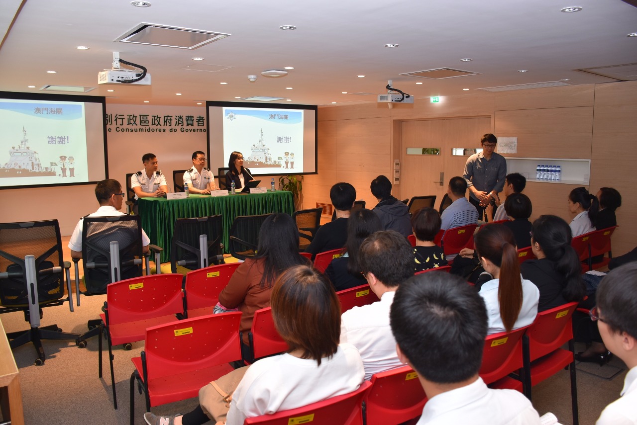 4月26日為「世界知識產權日」,海關聯同經濟局及消費者委員會代表,為業界舉辦“維護消費權益及知識產權”專題講座,以加強本澳“誠信店”及“加盟商號”對法律方面的認知,提高他們對保護知識產權的意識。