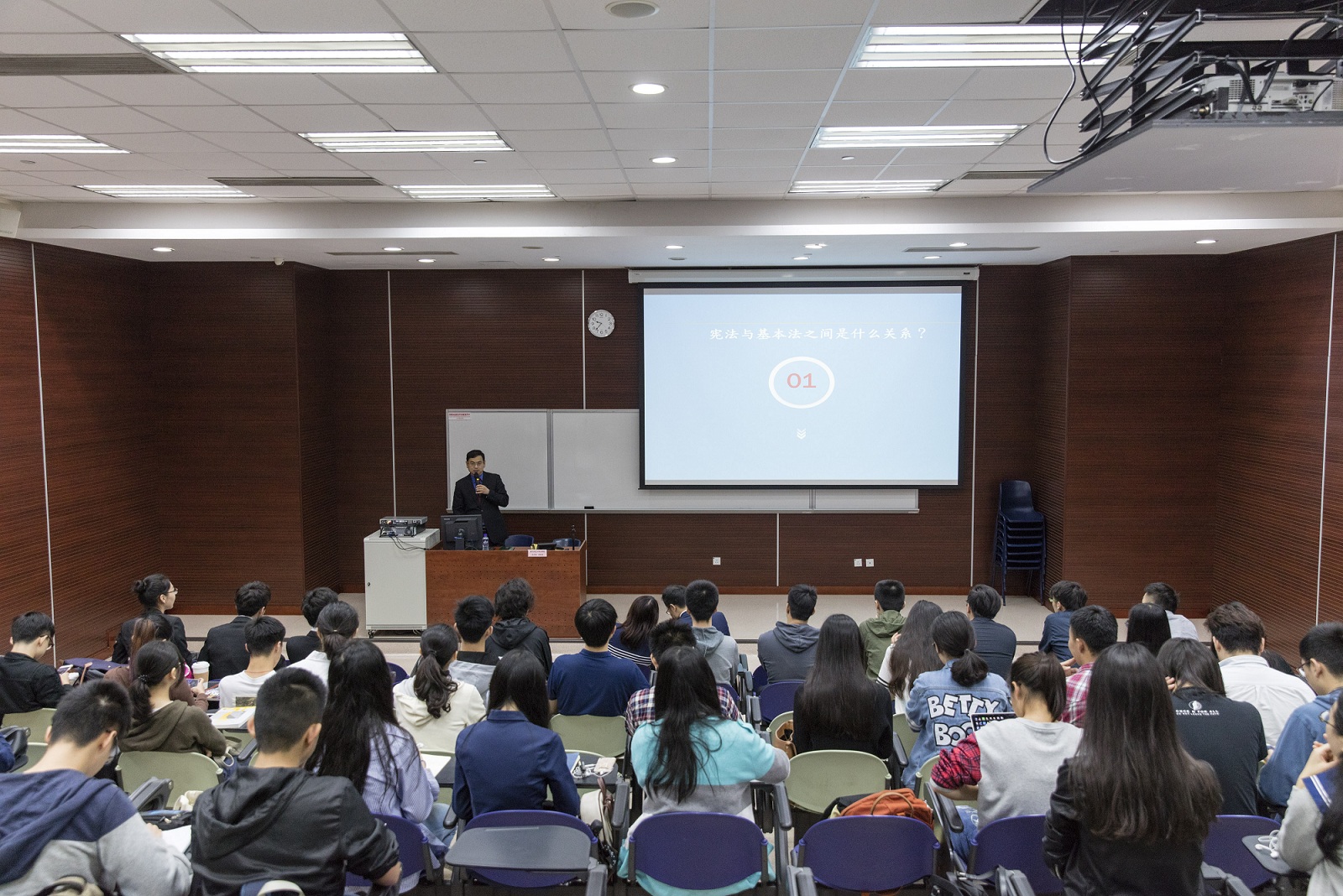 由法務局主辦的高等院校憲法與基本法專題系列活動,今年首場已於四月二十七日在澳門科技大學舉行,分別舉辦了專題講座及“國是茶聊”小型討論會,參與學生約八十人。是次活動由法務局與澳門科技大學合辦,主要以介紹憲法與基本法的關係、中央與澳門特別行政區的關係為主要內容,邀請了澳門科技大學法學院副教授朱世海主講。法務局法律推廣及公共關係廳廳長羅靜萍、澳門科技大學法學院研究生課程主任易在成等嘉賓出席。