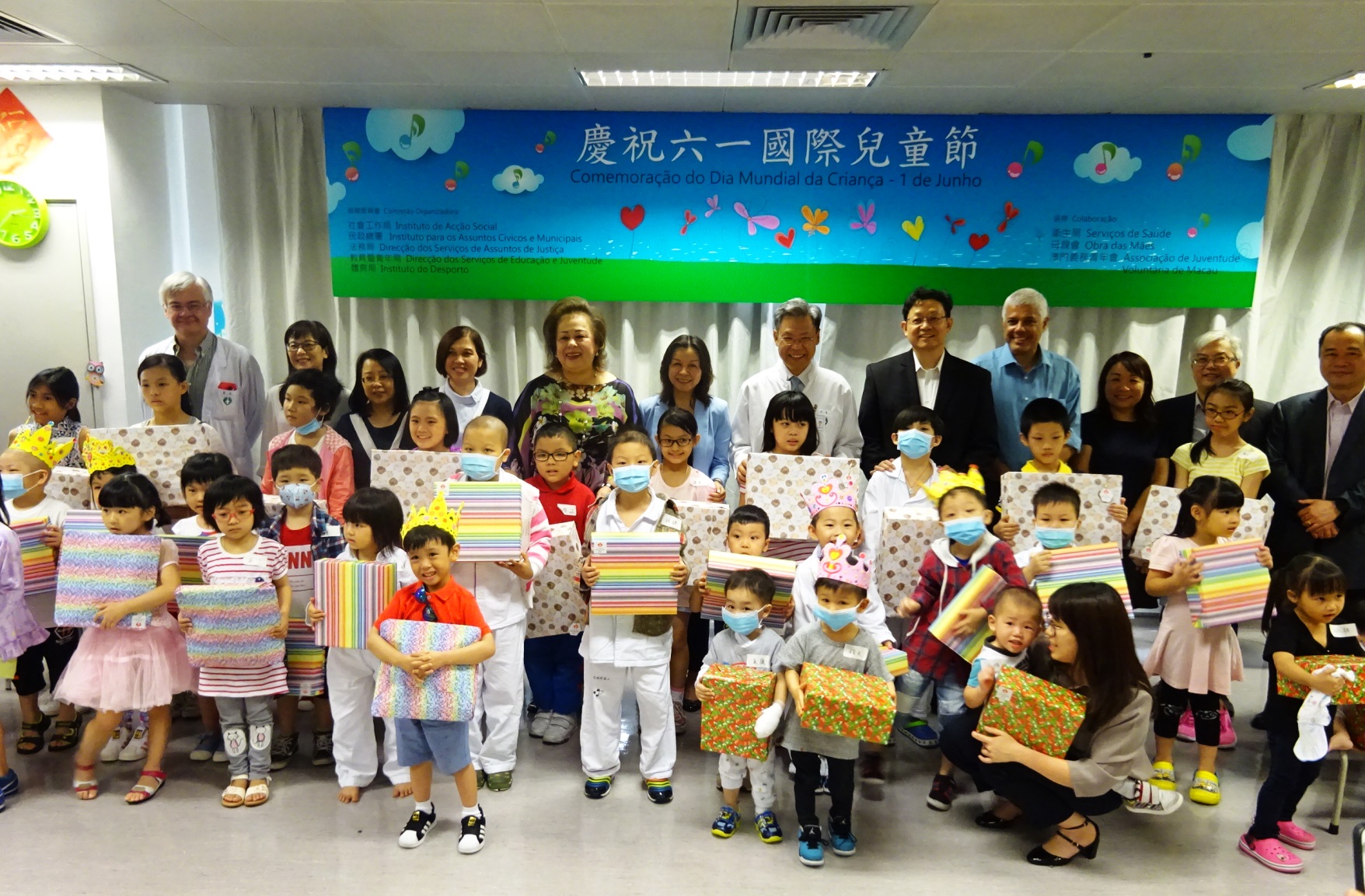 為了慶祝六一國際兒童節,社會工作局聯同多個政府部門及民間機構代表今(1)日下午先後前往鏡湖醫院及仁伯爵綜合醫院探訪住院兒童及派發禮物,送上特區政府和社會各界的節日問候和祝福。