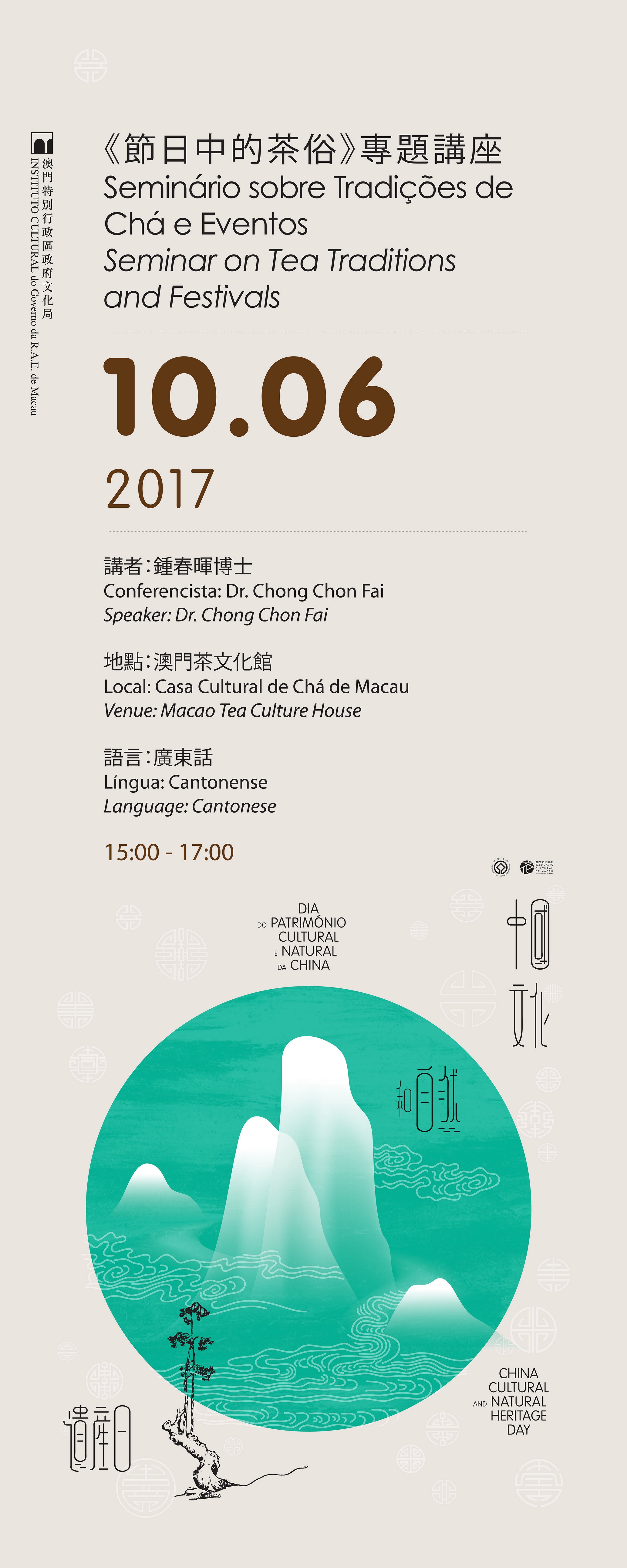 中國文化和自然遺產日專題講座“節日中的茶俗”將於本周六(六月十日)下午三時至五時在澳門茶文化館舉行,邀得博士鍾春暉主講,講座即日起接受網上報名,費用全免,講座並提供品茗,歡迎公眾踴躍參與。