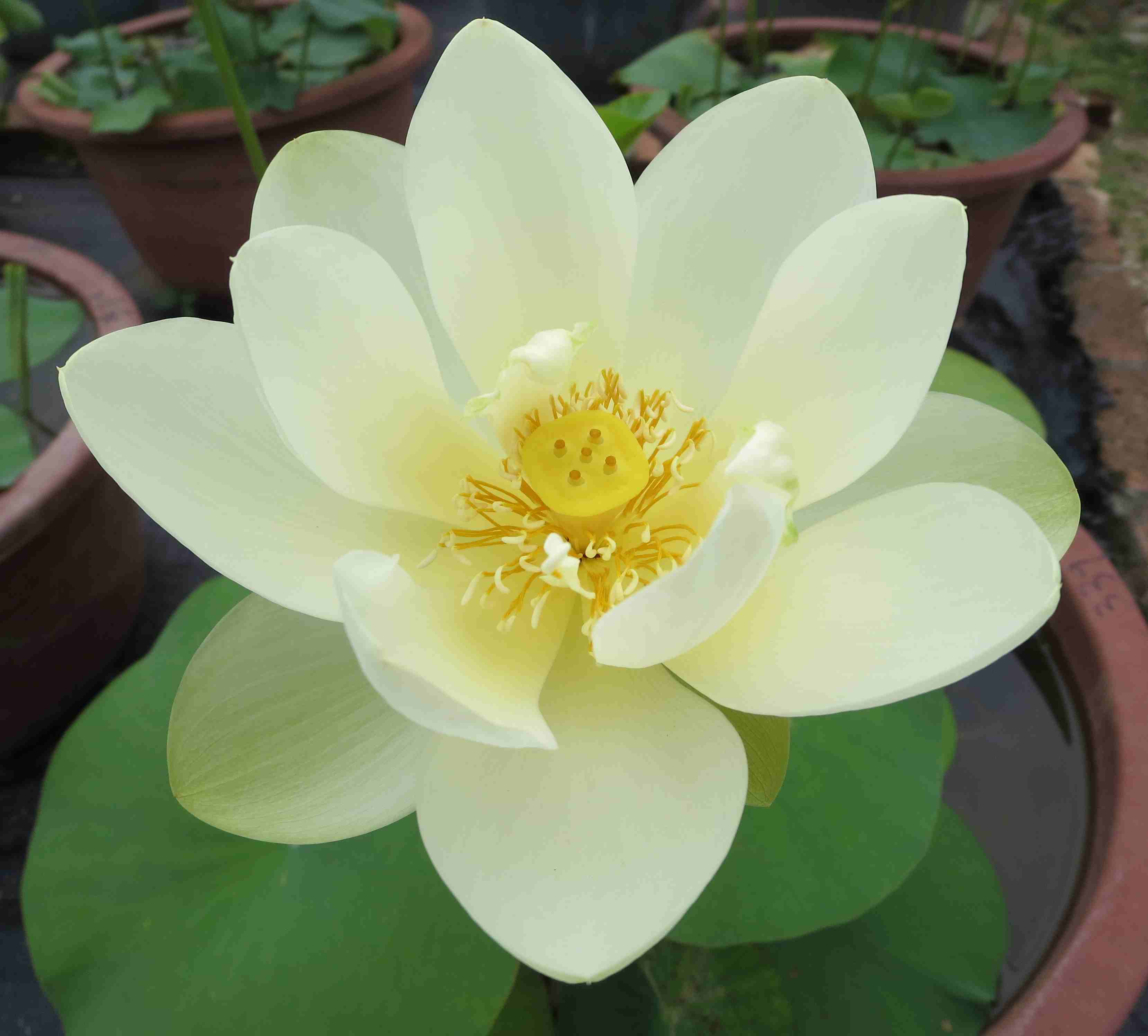今年花展主題品種為“濠江碧波”,是中國荷花研究中心於二○○九年為慶祝澳門特別行政區成立十周年而育成的新品種,以澳門別稱“濠江”命名。“濠江碧波”清麗脫俗,在荷花品種分類上屬於大株型品種,花色為白色,單瓣,花態為碗形,花期早而群體花期長,著花密度十分繁密,適於缸栽。
