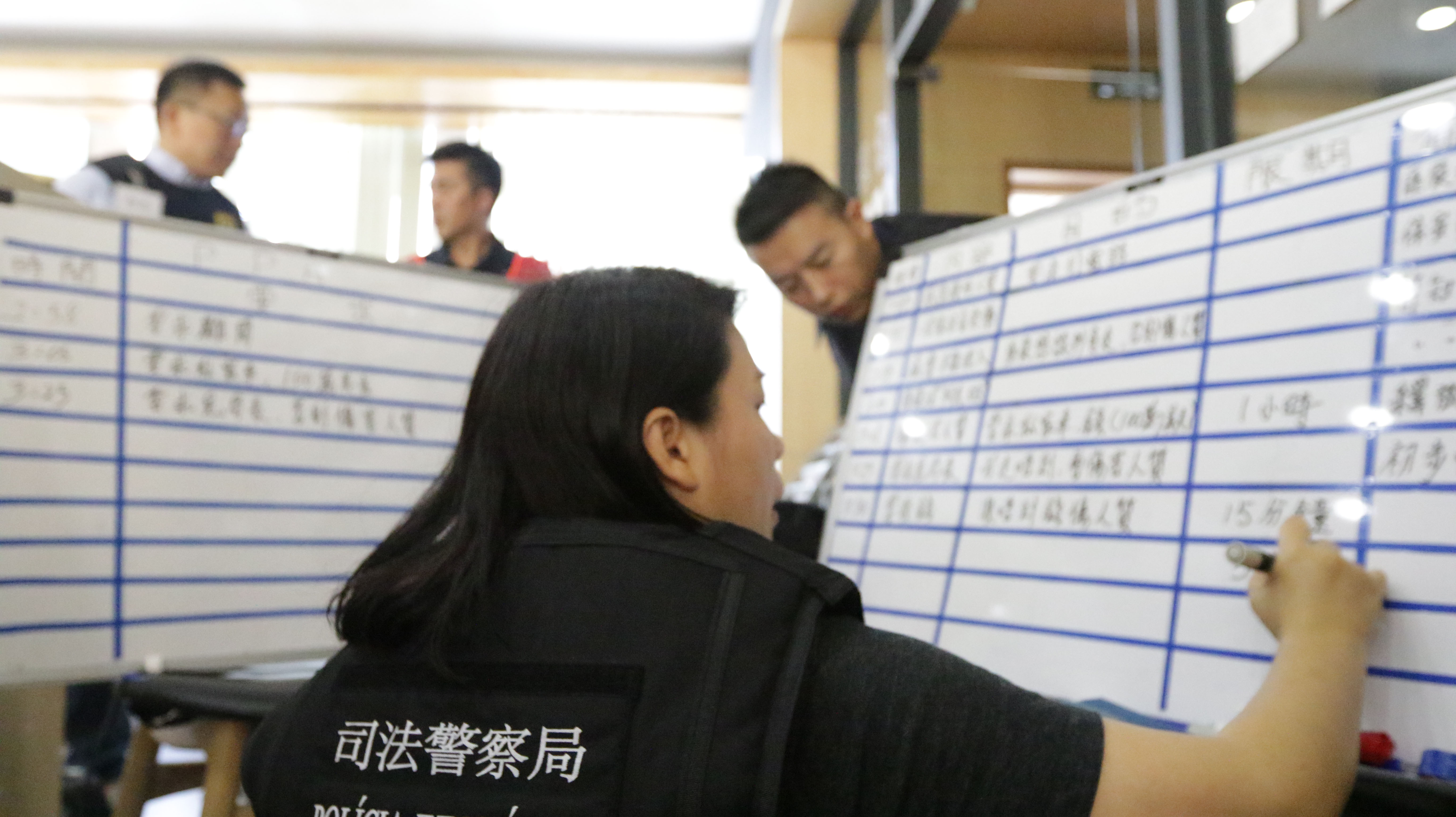 司法警察局今天進行一個代號「居安思危」的大型危機談判演習,全體談判組二十七名人員參與,演習由早上九時開始至下午五時結束,進行了多項的談判技巧、器材操作、遞送物資、接收傷者、談判隊員的交接更等程序的演習。