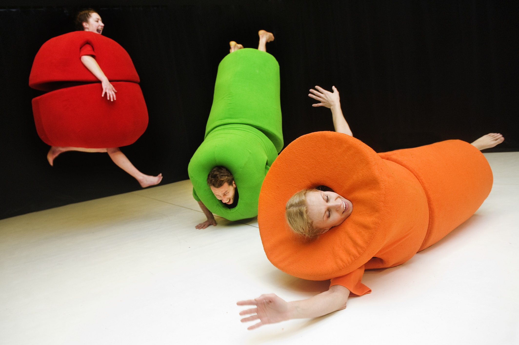 由立陶宛丹斯瑪舞團帶來的《蔬果扭扭樂園》在2012年更被立陶宛文化部提名爲最佳兒童節目,是一部專為一至四歲小孩而設的作品。三位百厭跳跳紮的舞者配合音樂伴奏,彈一彈、扭兩扭、再打個大關鬥,將花喱花綠的顏色和大大小小的幾何形狀拼湊,堆砌出一幕幕激盪想像的拼圖,打造出「色」又震撼孩子視覺的啟智樂園!