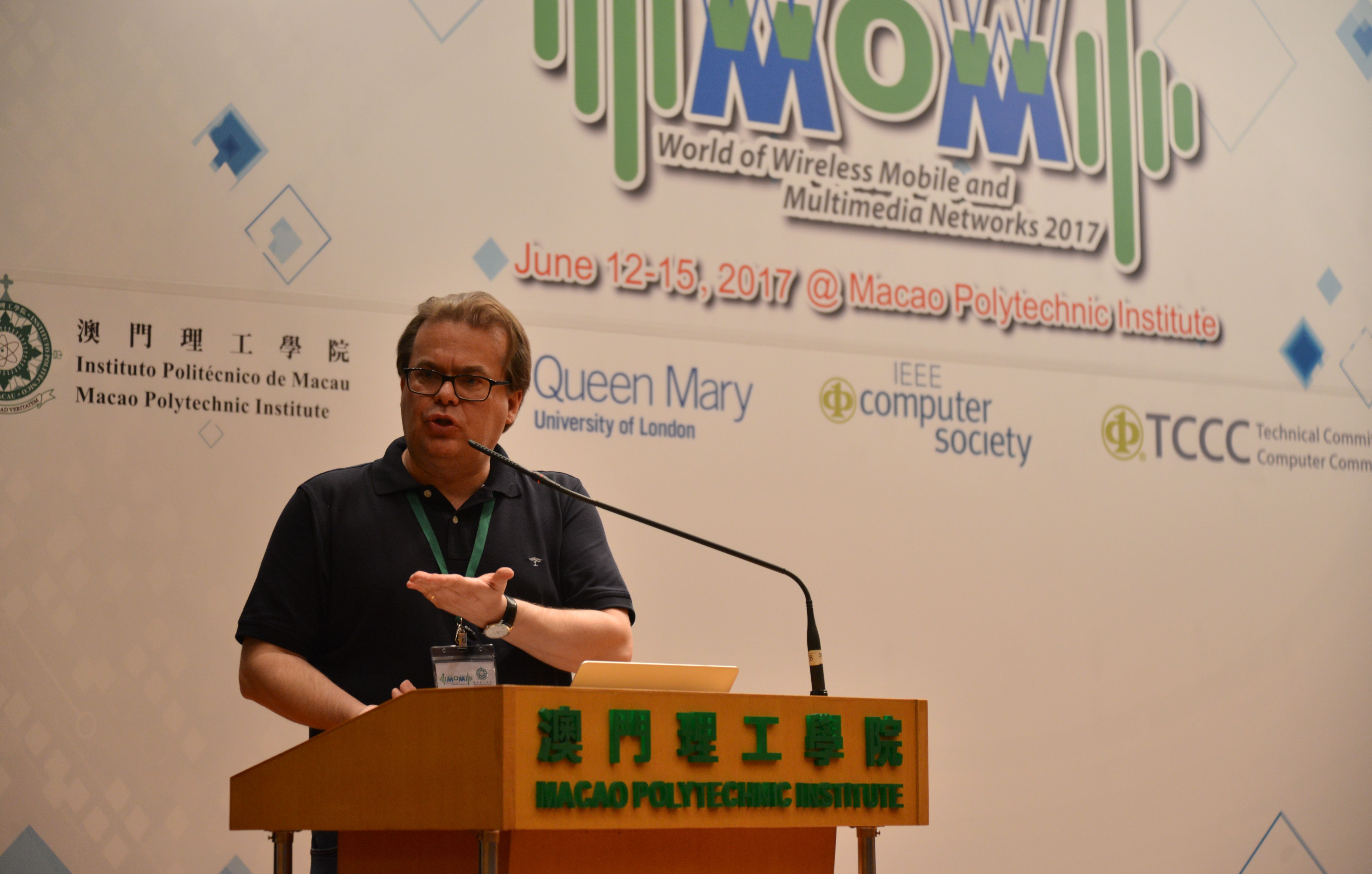 由澳門理工學院、國際電機電子工程師學會(IEEE)及IEEE計算機學會、IEEE計算機通信技術委員會、英國倫敦瑪麗女王大學及美國密蘇里州科技大學共同主辦的第十八屆“IEEE無線、移動和多媒體網絡國際研討會"(World of Wireless, Mobile and Multimedia Networks, WoWMoM)6月15日於澳門理工學院圓滿結束,學術交流及研討熱烈,與會學者皆表示獲益良多,取得豐碩成果。