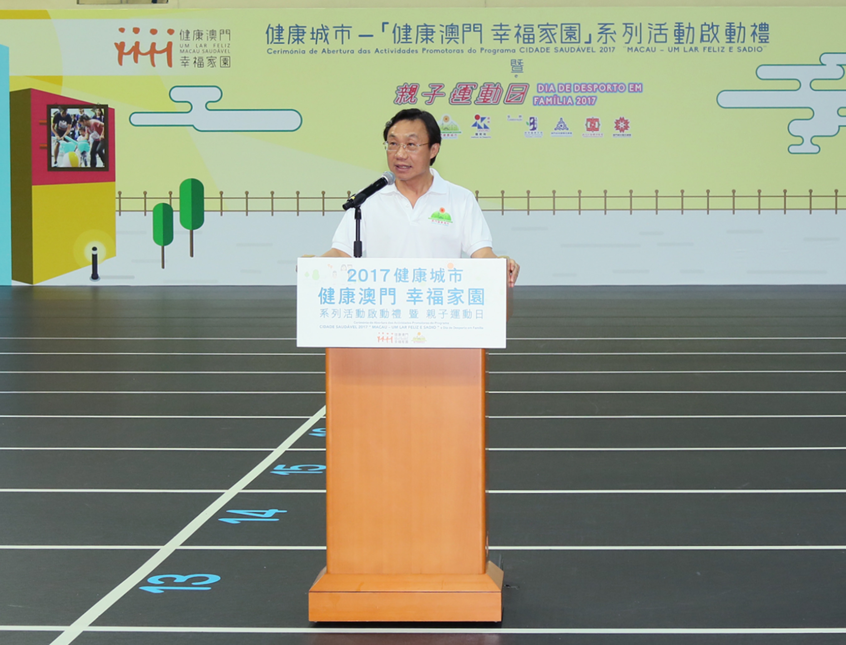 譚俊榮司長在致辭時特別感謝,參與者對活動的支持。他表示,健康是快樂的泉源,是每一個人全面發展、生活幸福的基石,也是一個地區文明進步的重要標誌。澳門特區經過多年的努力,在衛生服務、健康生活促進、食品安全、社區環境、社區安全等方面取得了顯著成效,獲得世界衛生組織及各界的讚賞,亦得到市民的肯定和支持。他指出,社會文化司一直致力統合不同的政府部門,在全社會倡導“健康澳門 ,幸福家園”的理念,期望加強與社會各界合作,讓每一位澳門市民都加入共建“健康城市、健康社會、健康澳門”的行列,以走向“人人享有健康”的美好未來。為此,特區政府不斷完善醫療衛生體系,從預防、診治和康復的服務系統上着手,加強和完善醫療服務,並推行“自家健康、自家管理”計劃,讓每一位市民主動為自己的健康負起責任;從兒童、青少年時期起培養健康意識、良好習慣,進一步強化健康教育、生命教育。其次,健全社會政策,伸延至各個層面,以維護巿民的身心健康。特區政府連同社會力量增強構建全面的支援體系,不論是長者、婦幼,還是身心障礙人士和弱勢社群,以及青年朋友、在職人士,在有需要時都能找到支援網絡。尤其對於身心障礙人士和弱勢社群,將帶動社會各界關心、支持他們參與社會、融入社會,攜手共建“傷健共融”的友善都市、健康社會。