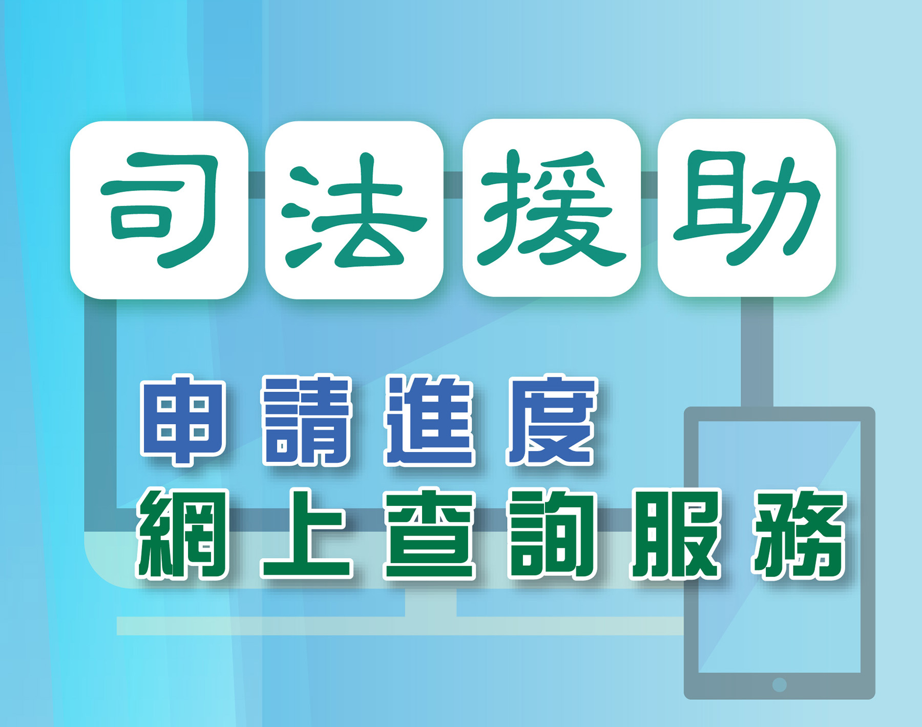 法務局一直致力配合特區政府“持續發展電子政務”的施政目標,近年積極推行和優化各項電子服務,在當局提供技術輔助下,司法援助委員會繼推出司法援助「網上預約服務」之後,現在又推出「司法援助申請進度網上查詢」服務,以方便市民更快捷地知悉申請的狀況。