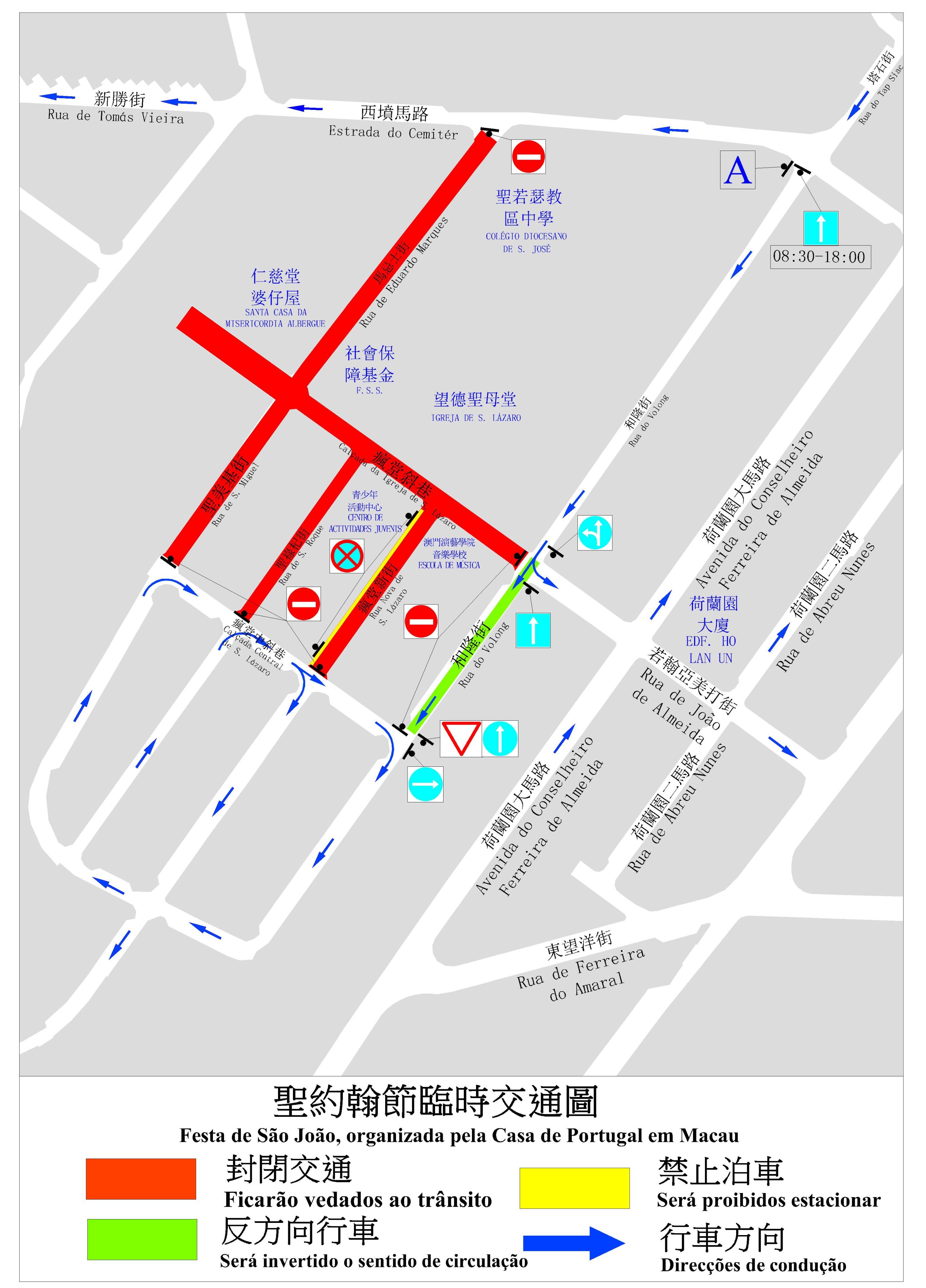 澳門葡人之家協會舉辦聖約翰節活動,6月23日(周五)起,望德堂區多處道路實施臨時交通安排。交通事務局呼籲駕駛者留意。