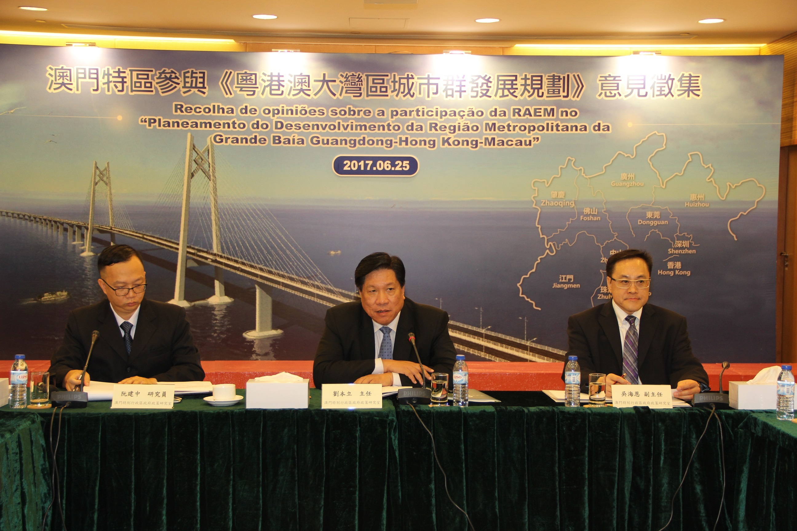 6月25日上午,澳門基層、教育、青年及法律範疇多個社團的領導和代表來到特區政府政策研究室,表達對澳門特區參與《粵港澳大灣區城市群發展規劃》的意見和建議。政策研究室主任劉本立和副主任吳海恩認真聽取了意見。