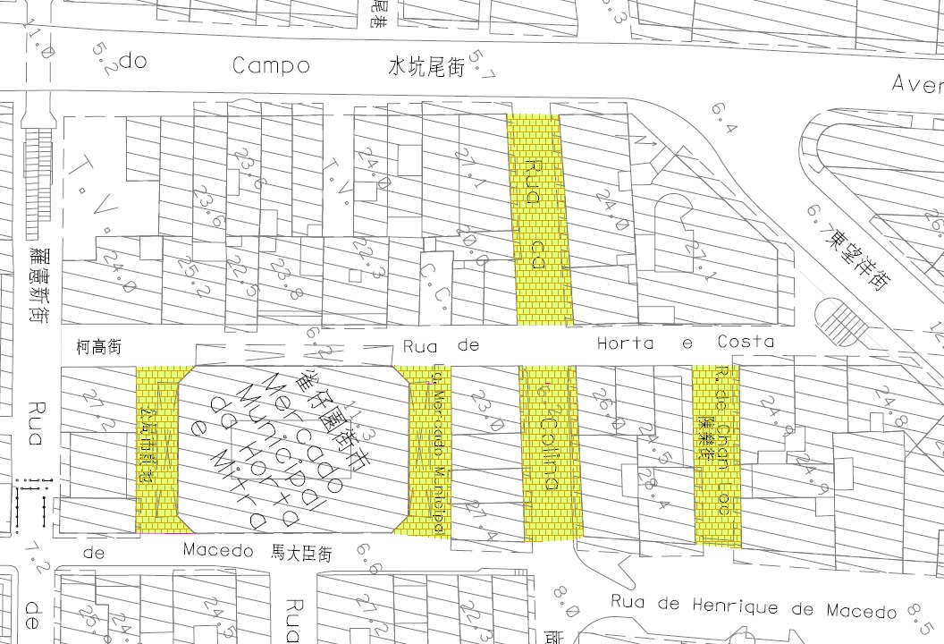為理順雀仔園街市周邊街道的環境,民署已於去年完成美化雀仔園街市周邊街道工程(第一期),對柯高街的道路設施進行優化。第二期工程即將展開,內容包括於部分崗陵街、公局市前地(雀仔園街市)及陳樂街鋪設行人道飾面磚,以紅、灰有色天然花崗石磚鋪砌行人道飾面,配以黑、白二色葡國碎石鋪砌而成特色圖案,增添美化效果,全面優化雀仔園街市周邊步行環境。另新增設活動鐵柱及圍欄以防止車輛進入,以規劃成一個新的行人專用區;加強羅憲新街與步行系統之間的標識銜接及滿足無障礙通行的要求,並更新區內排水井的位置,將原有兩側的排水井更改至行人路中間。