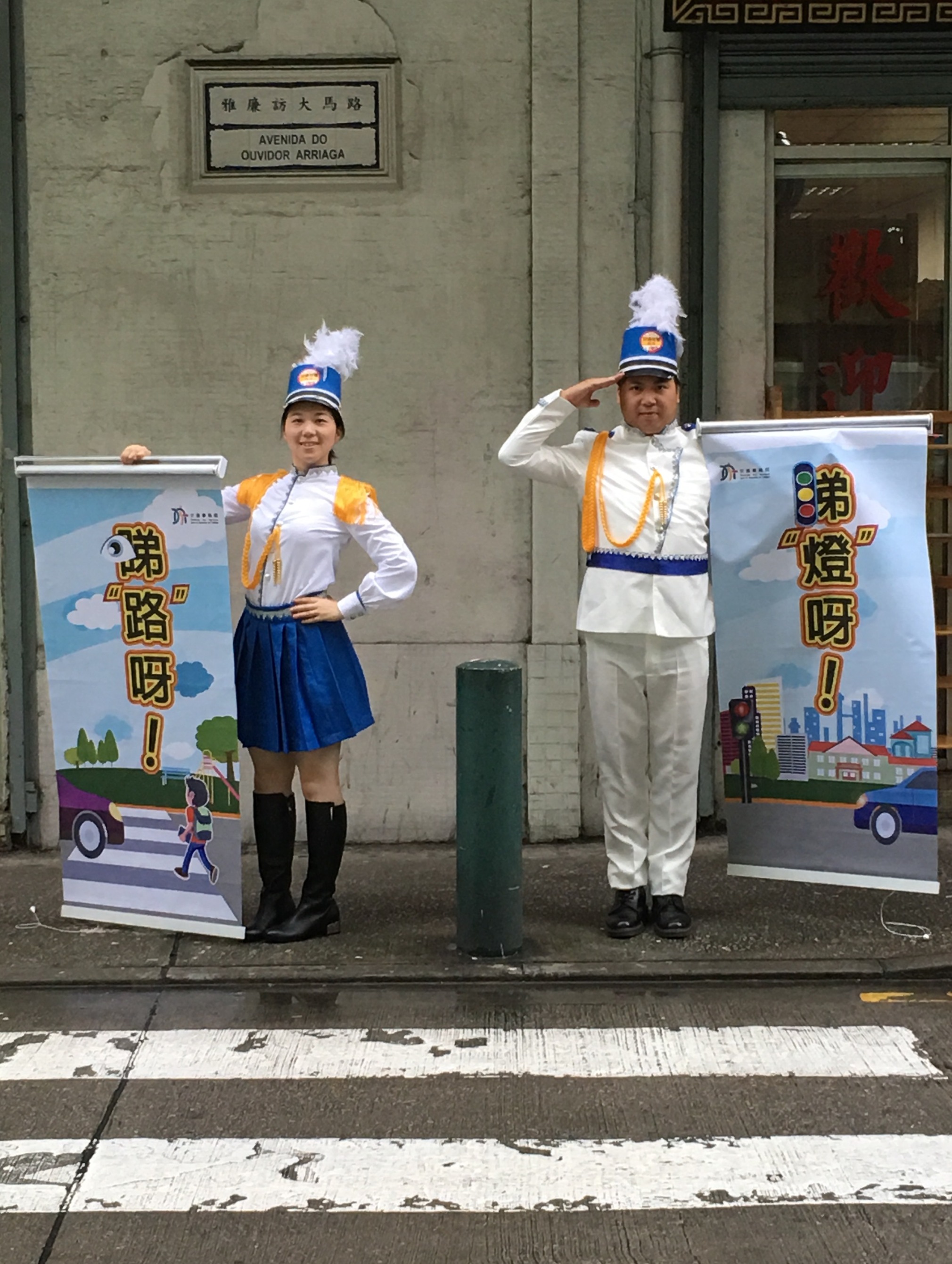 交通事務局暑假再度推出「交通有禮」劇場,是次演員們化身帥氣衛兵,在7至8月逢周日穿梭於本澳不同區份的斑馬線和交通燈,以衛兵步操主題配合輕鬆幽默的肢體語言向市民和旅客宣揚善用過路設施、安全橫過馬路等交通安全訊息。