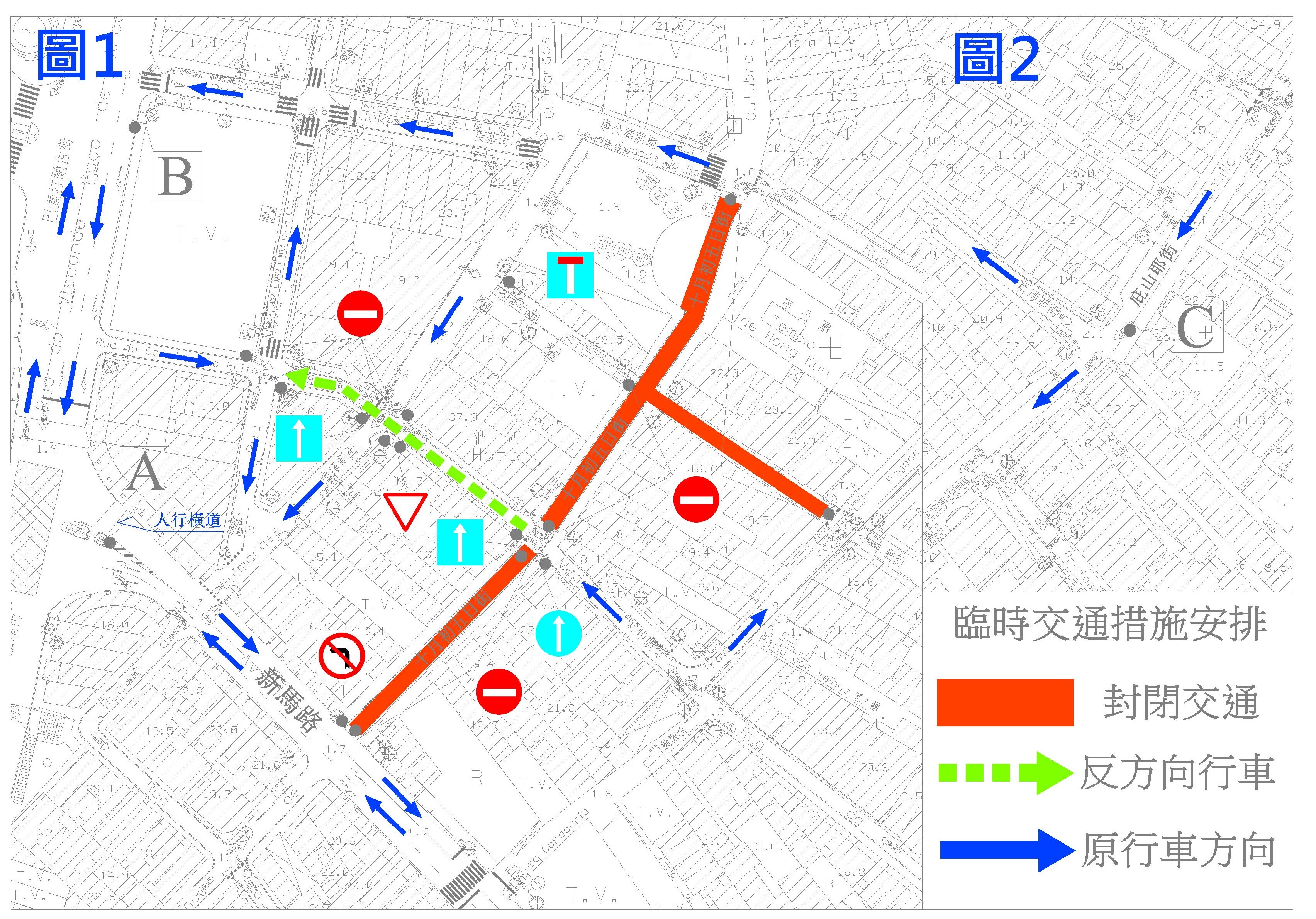 配合澳門中區南區工商聯會舉辦活動,7月15日(周六)至10月1日(周日)逢周六及周日下午5時30分至晚上11時30分,介乎十月初五日街與木橋橫街之間一段木橋街,及介乎新馬路與康公廟前地之間一段十月初五日街臨時封閉交通,禁止車輛通行;介乎十月初五日街與通商新街之間一段新埗頭街則改反方向交通,即車輛只可單方向往通商新街方向行駛。