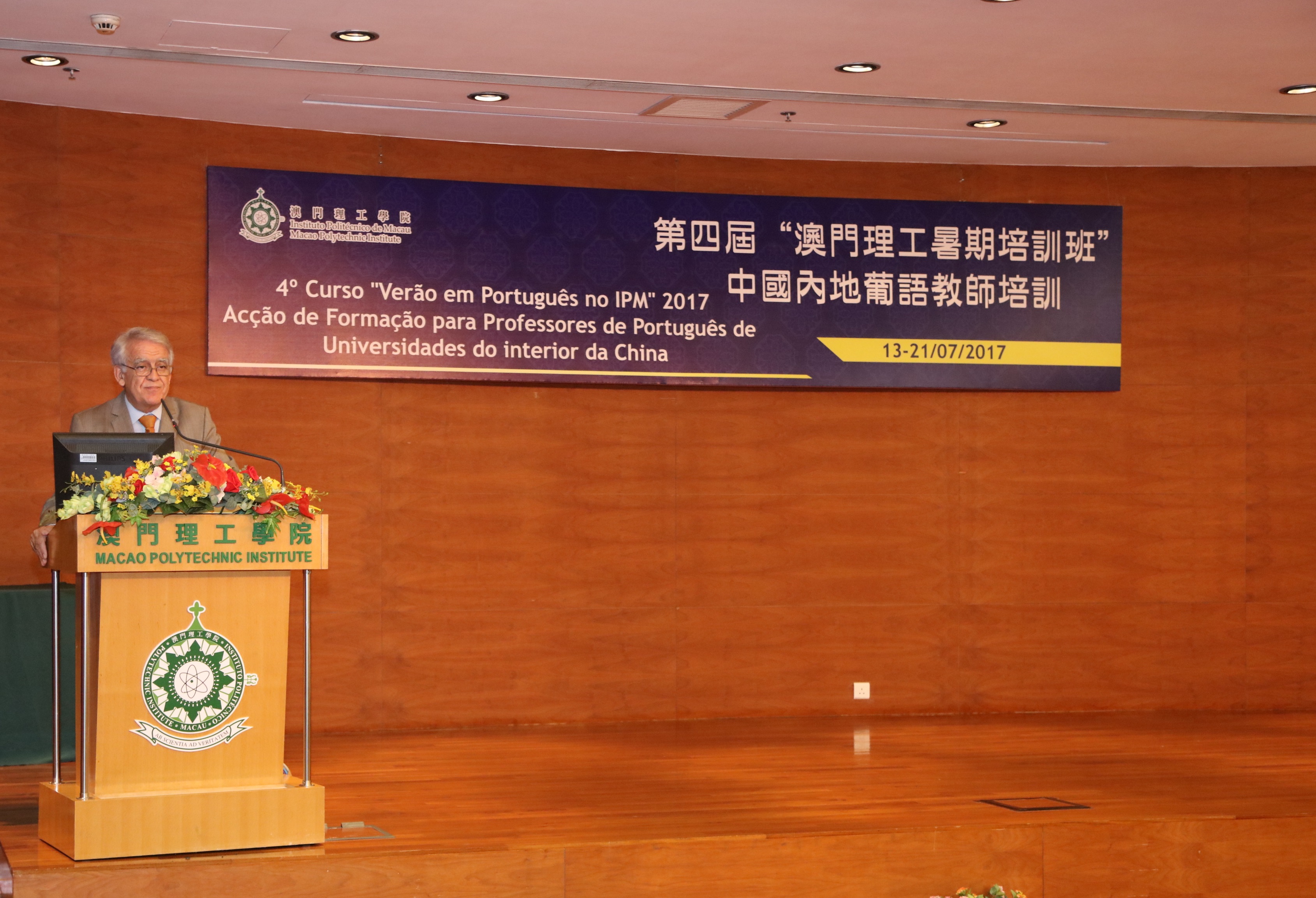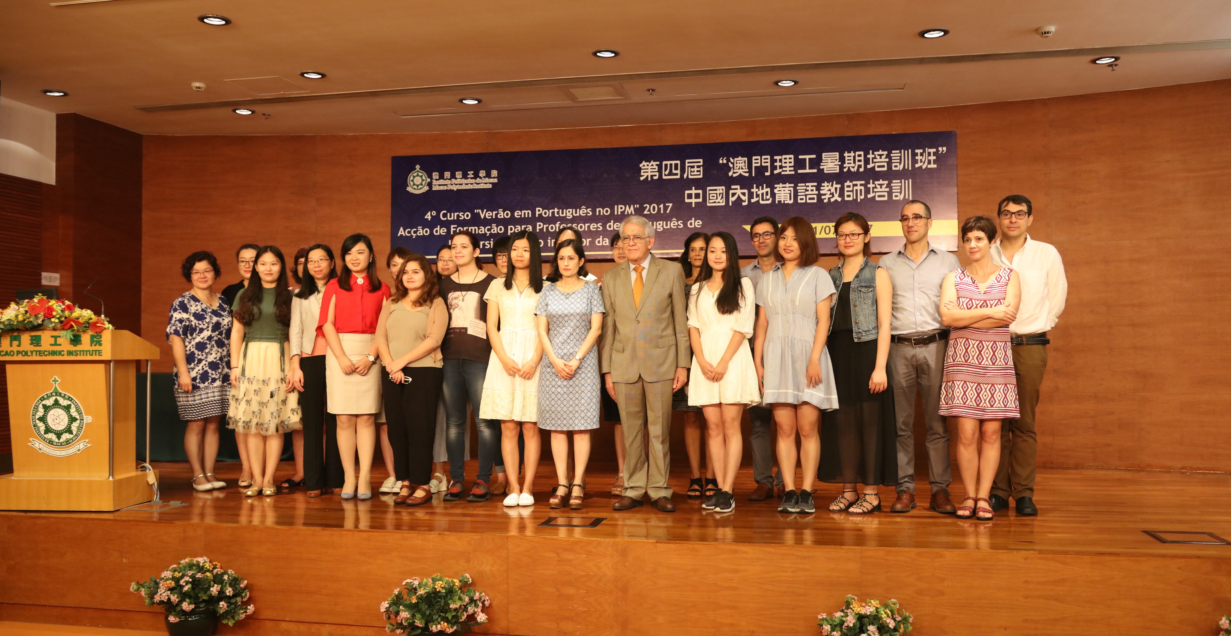 由澳門理工學院葡語教學暨研究中心主辦的第四屆“澳門理工暑期培訓班”中國內地葡語教師培訓開班禮,七月十三日上午在理工匯智樓演講廳舉行,有來自內地大學的二十二位講師和準葡語老師出席了開班儀式。