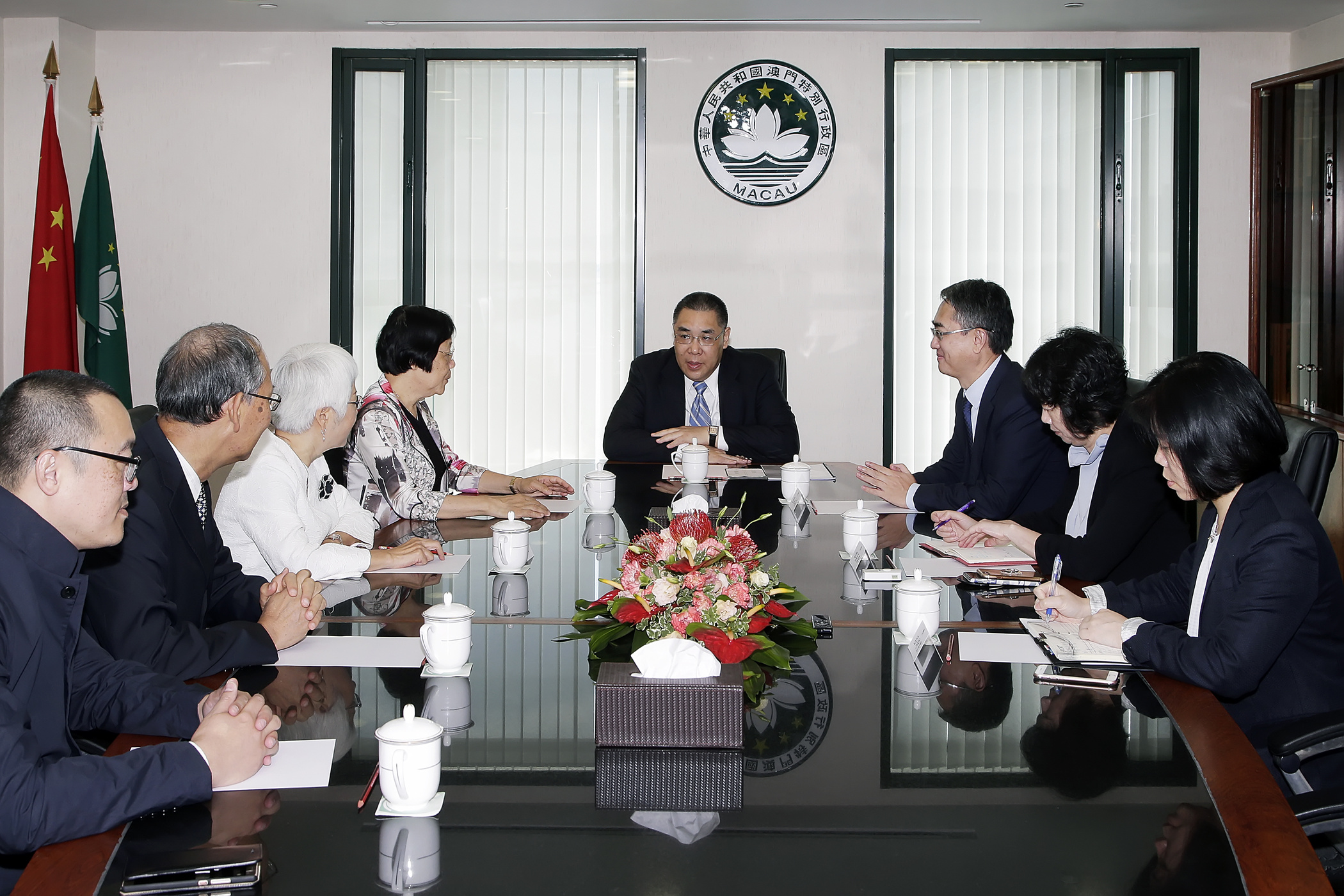 行政長官和參加會見的廉政專員張永春與各人就完善紀監會的工作交換意見。行政長官認同需要加強教育宣傳,讓居民更了解廉政公署人員紀律監察委員會的職能和工作,和了解廉政建設的資訊,有助於居民共同維護廉潔公正的社會。