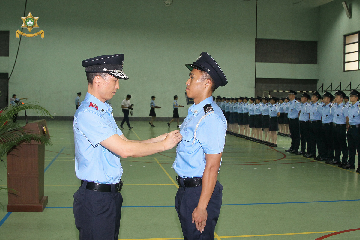 今天(07月19日)中午12時,在治安警察局特警隊大樓內為新入職警員舉行就職典禮。儀式由治安警察局代局長黃子暉副警務總監及代副局長劉運嫦警務總長主持,各部門主管均有出席,並為新警員戴上襟章。