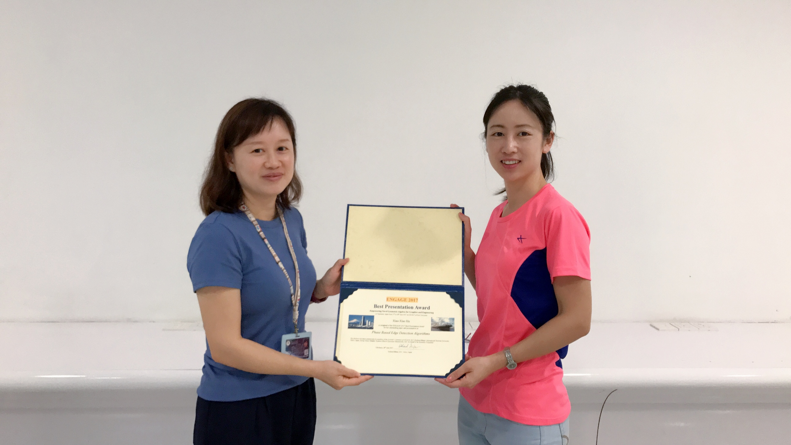 澳門大學科技學院博士生胡曉曉的科研論文《Phase based edge detection Algrothms》於全球歷史最悠久的電腦圖像會議Computer Graphics International(CGI)上獲國際專家高度肯定,並頒授“論文最佳表現獎"。