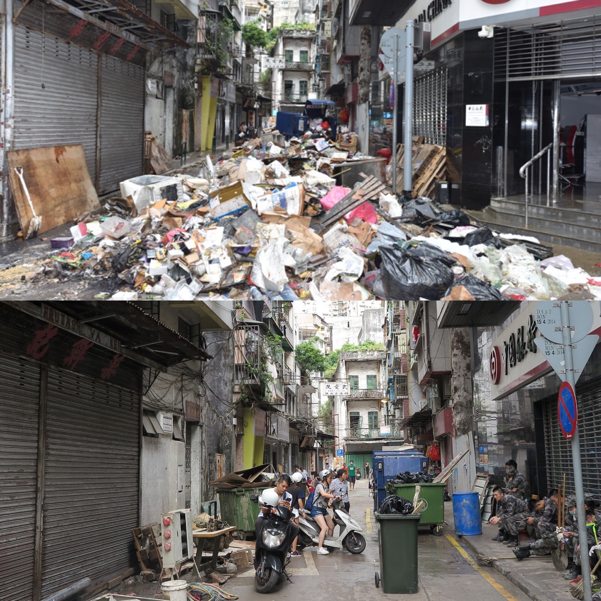民政總署動員人力、車輛及器械等資源,聯同政府各部門、清潔專營公司及民間機構團體,全力跟進風後清理街道的善後工作。由昨日(8月24日)至今日清晨共收集垃圾量約1,500噸,較平日多出約700噸。