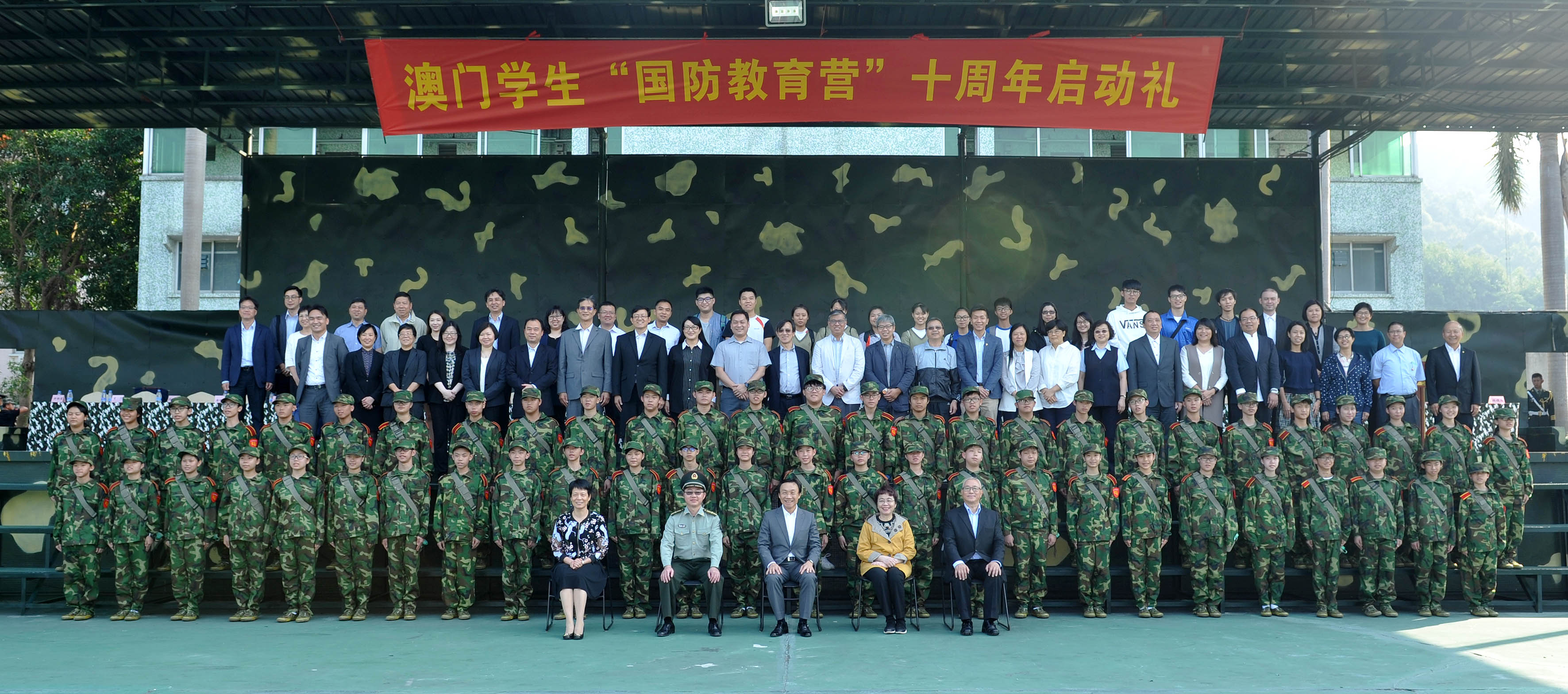 為配合及落實本年度特區政府的施政方針,加強青年社會責任感和加深家國情懷,由教育暨青年局主辦、澳門童軍總會承辦的2017/2018學年“國防教育營”於本年10月在“中山國防教育訓練基地”正式展開。本學年為“國防教育營”推行第十個學年,社會文化司司長譚俊榮於10月31日率團前往中山訓練基地參與“國防教育營”十周年啟動禮。同行包括教青局局長梁勵、中央人民政府駐澳門特別行政區聯絡辦公室文化教育部部長徐婷、澳門童軍總會理事會主席梁少培、社會文化司司長辦公室惠程勇顧問、林曉白顧問、教青局副局長老柏生、代副局長梁慧琪、廳長黃健武、廳長阮佩賢、廳長陳旭偉、代廳長龔志明、學校督導協調員黃懿蓮、青年事務委員會委員、非高等教育委員會委員、教學人員專業委員會委員、本澳校長及11名歷屆參與學生,獲中山國防教育訓練基地副主任張培棟及教官們的熱烈歡迎。