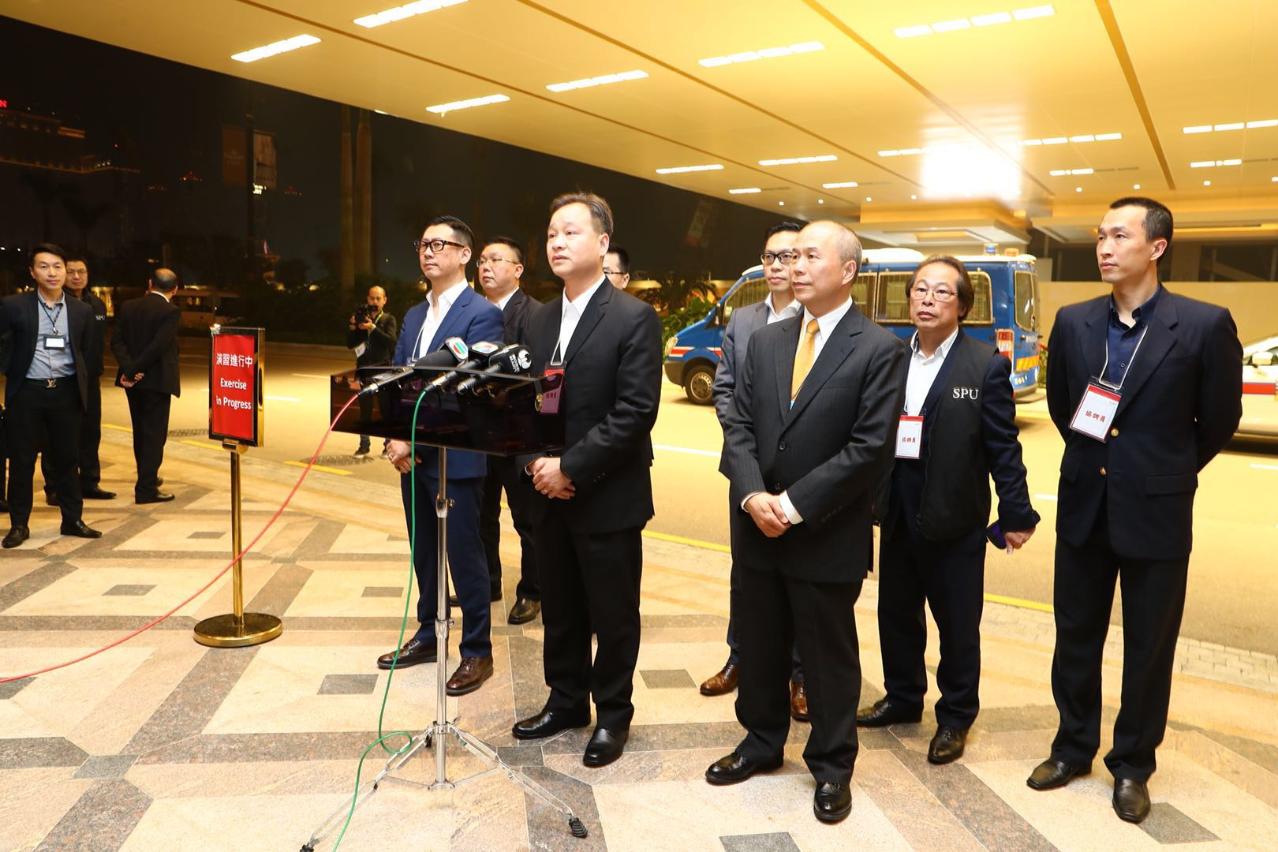 是次演練歷時約兩小時,上述九個部門及機構共派出約350名人員參與,過程順利,並取得了預期效果,有助加強各相關政府部門及博企的協調及聯動能力,以應對娛樂場可能出現的突發事件,從而更好地維護澳門良好的治安環境,保障居民和旅客的生命財產安全。