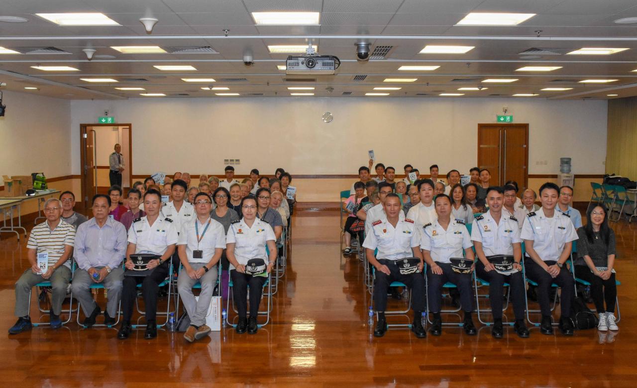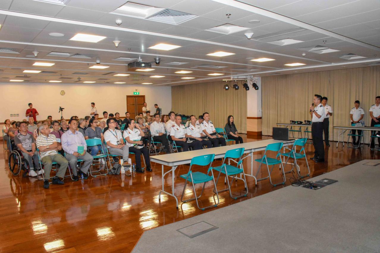 於講座上,海關人員向參與者講解颱風來臨前應做好的事前準備,包括加固門窗、把花盆等雜物移往屋內,同時亦要貯備適量及足夠的生活及防災物資。在懸掛颱風期間應密切留意電台及電視台的消息,留在安全地方避免外出,當政府啟動撤離計劃時,海關會派出巡邏車於街上進行廣播,需要撤離的人士應選擇合適的撤離路線,並遵照現場的警務人員指示撤離至安全地方或就近的避險中心,同時,亦建議市民可預先熟習撤離路線。