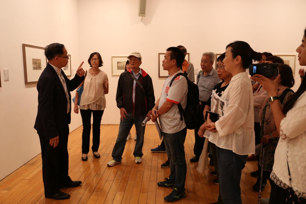 文化局澳門藝術博物館正值展出“變遷中的風景—藝博館藏澳門水彩畫展”,今日(10月4日)特別邀請澳門資深著名水彩畫家黎鷹,聯同澳門藝術博物館館長陳繼春及是次展覽策展人梁惠萍,為導賞員及澳門理工學院長者書院學員現場講解展覽作品,加深對展品的認識。