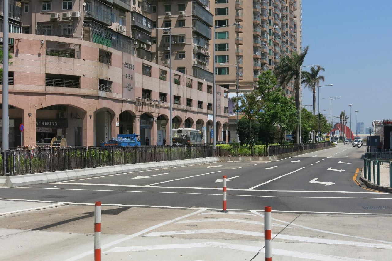因應東北大馬路與勞動節大馬路交界路口於每日尖峰時段車流較多,交通事務局經現場視察及研究後,早前結合工務部門雨水排放口截污管工程,一併調整上述路段部份中央花圃位置,以開闢行車線的同時讓東北大馬路近勞動節大馬路路段雙向車道各設為三線行車,從而提升道路的通行能力。