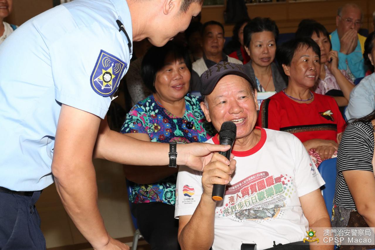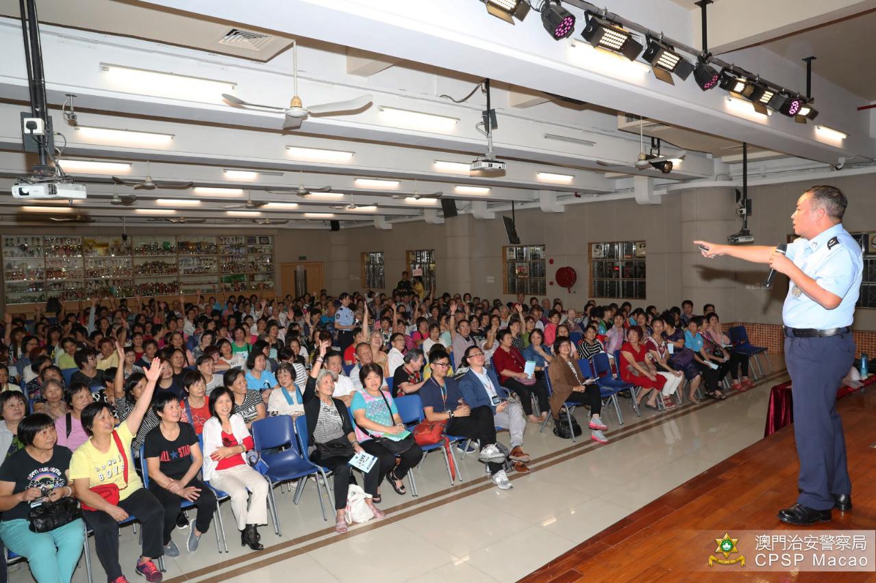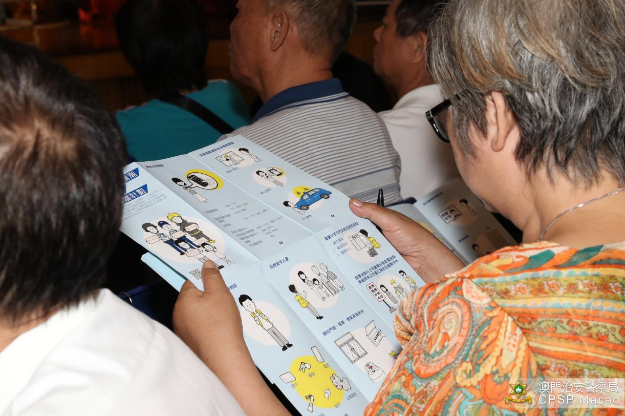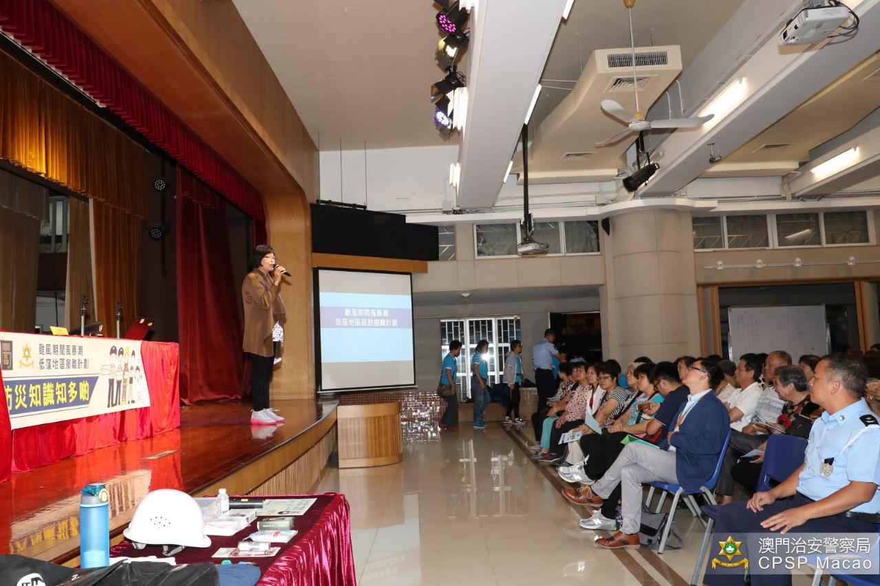 為加強市民認識風暴潮撤離計劃,提升市民防災避險意識,治安警察局在警察總局統籌下,持續宣傳“颱風期間風暴潮低窪地區疏散撤離計劃”及相關民防資訊。10月6日晚,治安警察局聯同社會工作局,在澳門坊眾學校舉辦講座,約350位市民參與。是次講座為了讓更廣泛的群眾參與,活動以公開報名的形式進行,並得到澳門街坊總會北區辦事處全力支持。澳門街坊總會北區辦事處周宜心主任表示,感謝警方透過不同渠道傳播民防資訊予社會大眾,以提升社會應對危機和災害的意識。