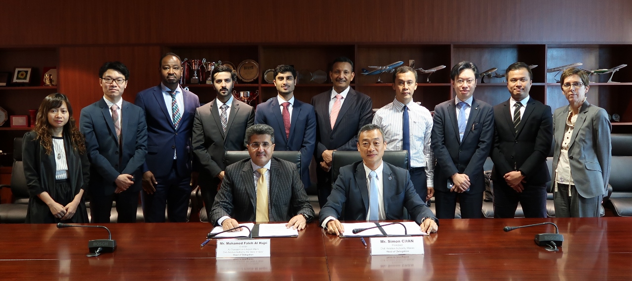 澳門特別行政區民航局局長陳穎雄和卡塔爾民航局航空運輸和機場部總監 Mohamed Faleh Al Hajri代表兩地政府草簽協定和簽署備忘錄。除民航官員外,兩地的業界代表亦以觀察員身份參與了會議。