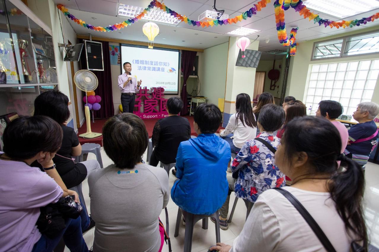 為更近距離向居民推廣與日常生活息息相關的法律知識,法務局於10月12日派員到澳門婦聯北區家庭服務中心舉辦“婚姻制度話你知”專題講座,對象為該中心的會員及其家屬。專題講座分為兩部分,第一部分由法務局代表就有關法律作講解,內容包括《民法典》規定的各種婚姻財產制、夫妻債務、離婚(兩願離婚和訴訟離婚)、配偶及子女的扶養等,且亦講解了涉及訴訟離婚時與司法援助相關的規定。第二部分為答問環節,與會者分別就日常生活中遇到的婚姻法律問題,包括夫妻財產的處分和分配、夫妻債務由哪一方承擔,以及離婚時就子女扶養費的安排、家庭居所的歸屬等積極提問,法務局代表均逐一作出回應,現場討論氣氛熱烈。
