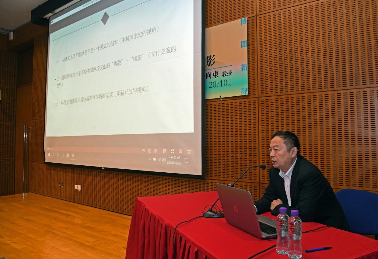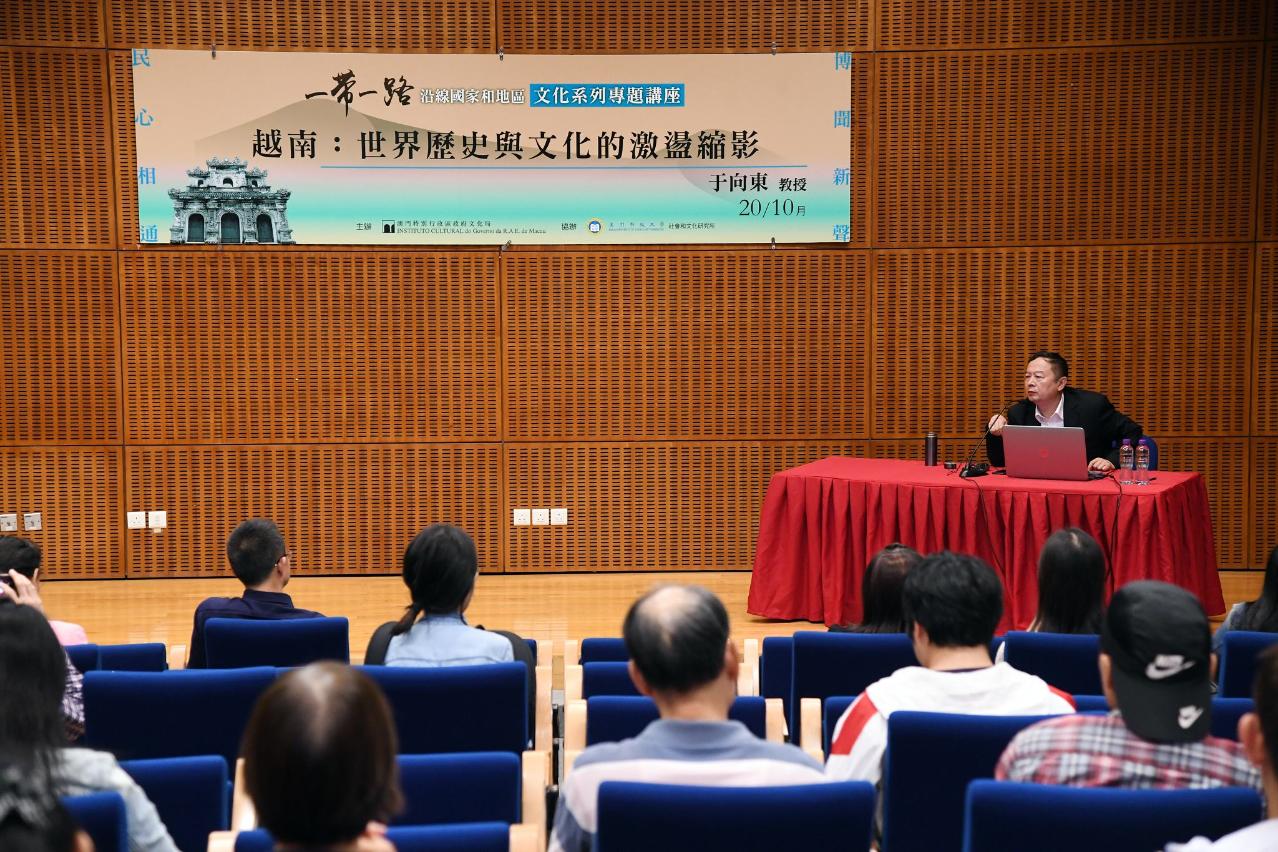 由文化局主辦、澳門科技大學社會和文化研究所協辦的2018年度“博聞新聲 民心相通——一帶一路沿線國家和地區文化系列專題講座”第六場已於日前(10月20日)圓滿舉行,講座主題為“越南:世界歷史與文化的激盪縮影”,由鄭州大學越南研究所所長于向東主講,帶領市民探索別具特色的越南歷史與文化。