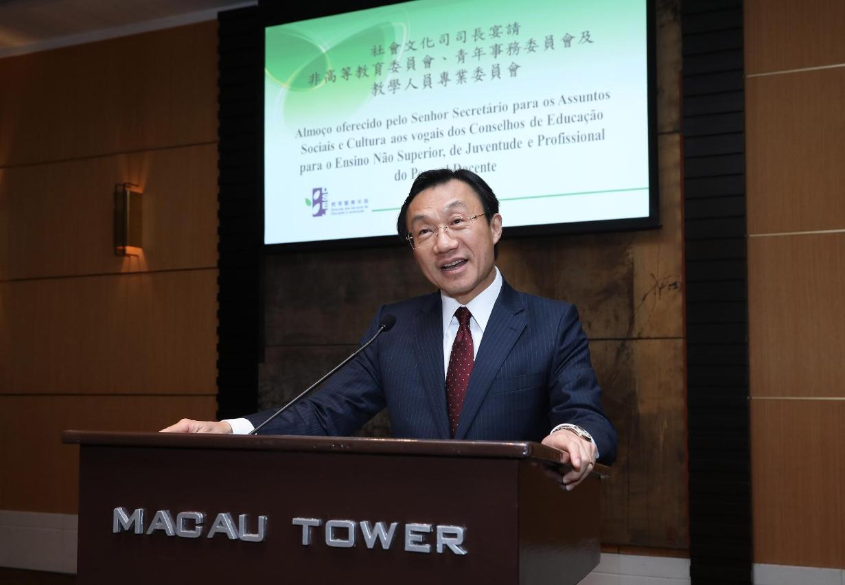 2月18日,社會文化司譚俊榮司長出席在澳門旅遊塔會展娛樂中心舉行的非高等教育委員會、青年事務委員會及教學人員專業委員會聯席春茗,與教青局老柏生局長、梁慧琪副局長、龔志明副局長,社會文化司司長辦公室郭曉明顧問,以及三會委員等87名嘉賓,共慶己亥豬年新春。
