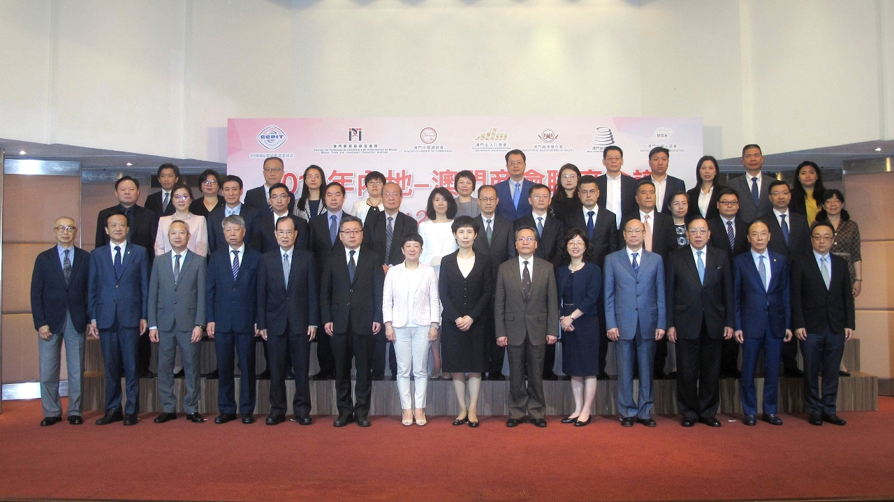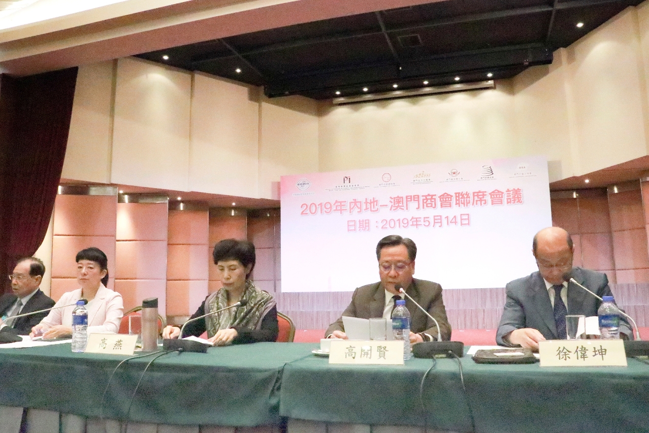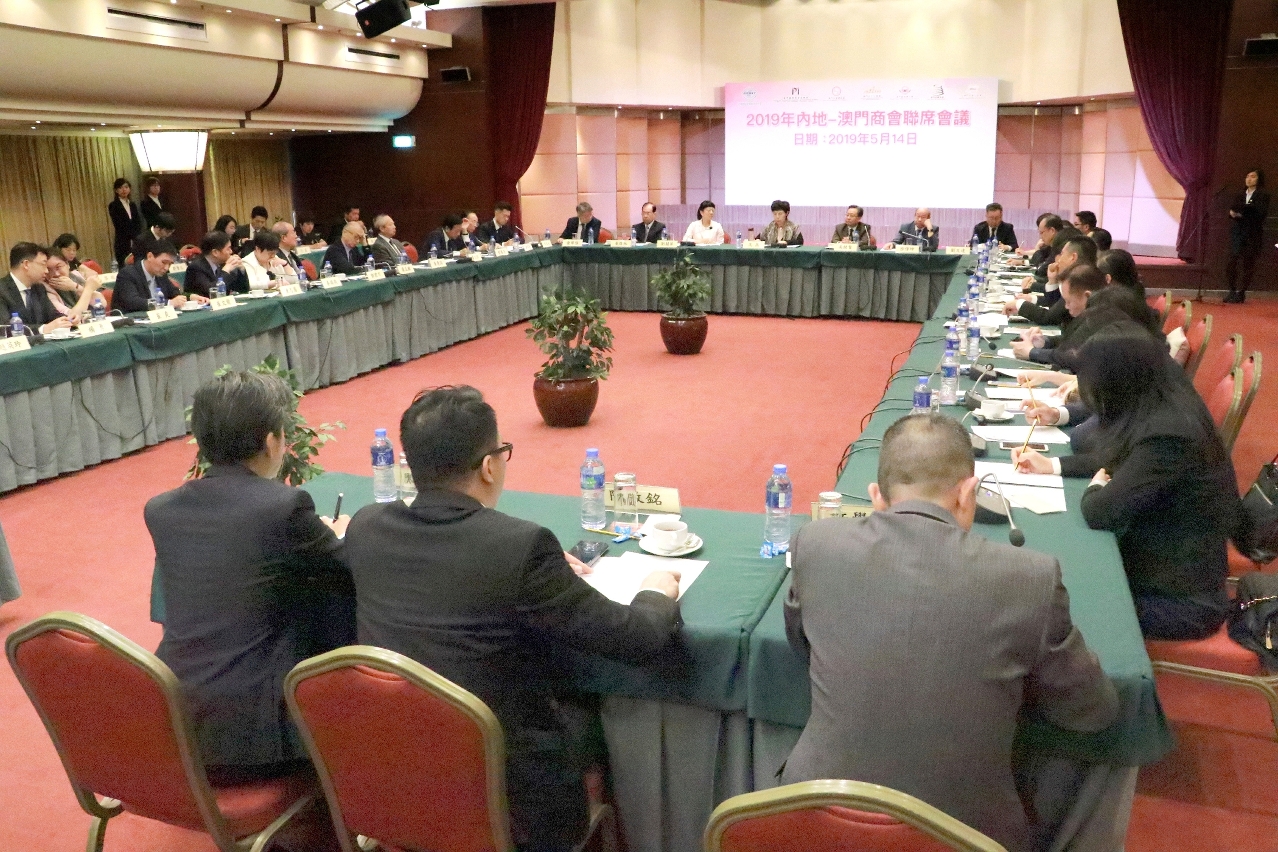“2019年度內地-澳門商會聯席會議”於昨(14)日假澳門世界貿易中心五樓蓮花廳舉行,兩地數十名貿促機構及商會的代表參加會議,就發揮澳門平台作用、深化兩地經貿交流、共同融入粵港澳大灣區建設等議題展開交流及探討。