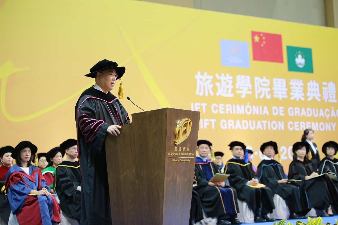 行政長官崔世安博士於畢業典禮上表示政府繼續支持旅遊學院充分發揮自身的辦學優勢,增強相關課程國際認證的實力;根據社會需要和學院條件開辦新課程,為澳門加快建設“一中心、一平台”培育多元化的人才,為積極參與 “一帶一路”和粵港澳大灣區建設,做好人才儲備,為澳門打造旅遊教育培訓基地作出更大的努力。